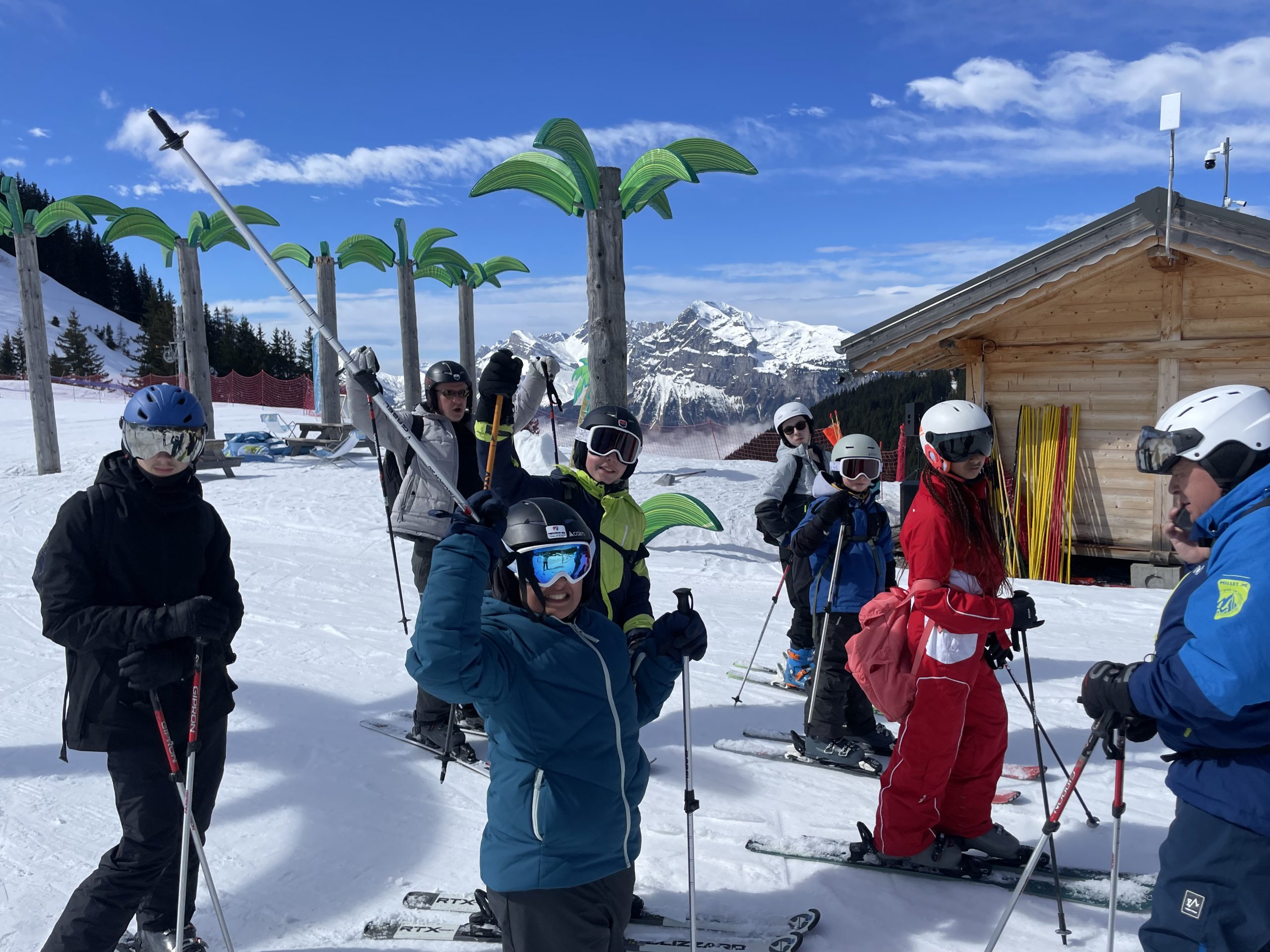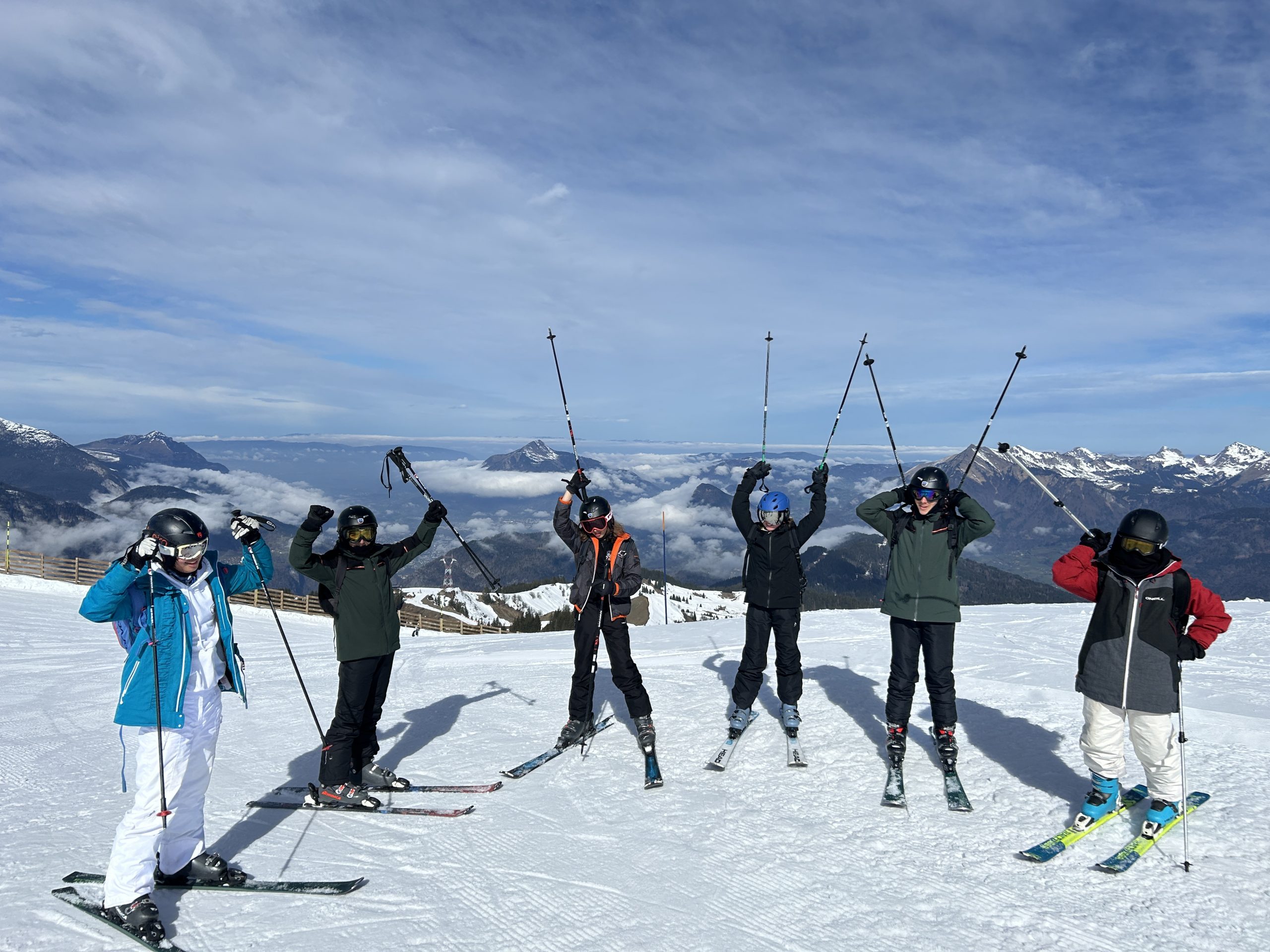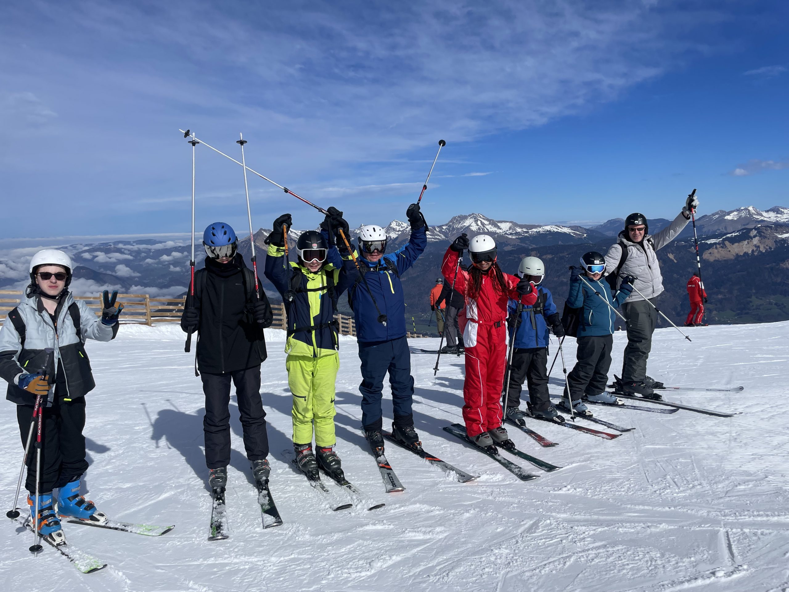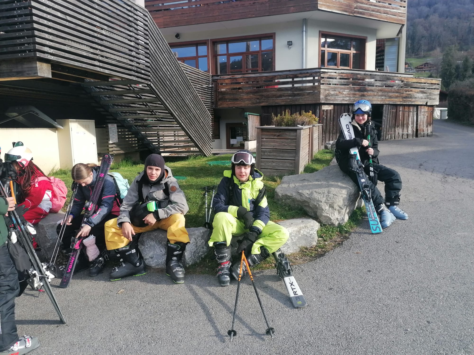 Le groupe des anciens débutants, composé d’Edem, Calixte, Gaspard V., Gaspard L., Mayssa et Naëll, sous la conduite bienveillante de Morgane et Frédéric, s’est élancé dans les airs en prenant le télésiège Chariande Express.