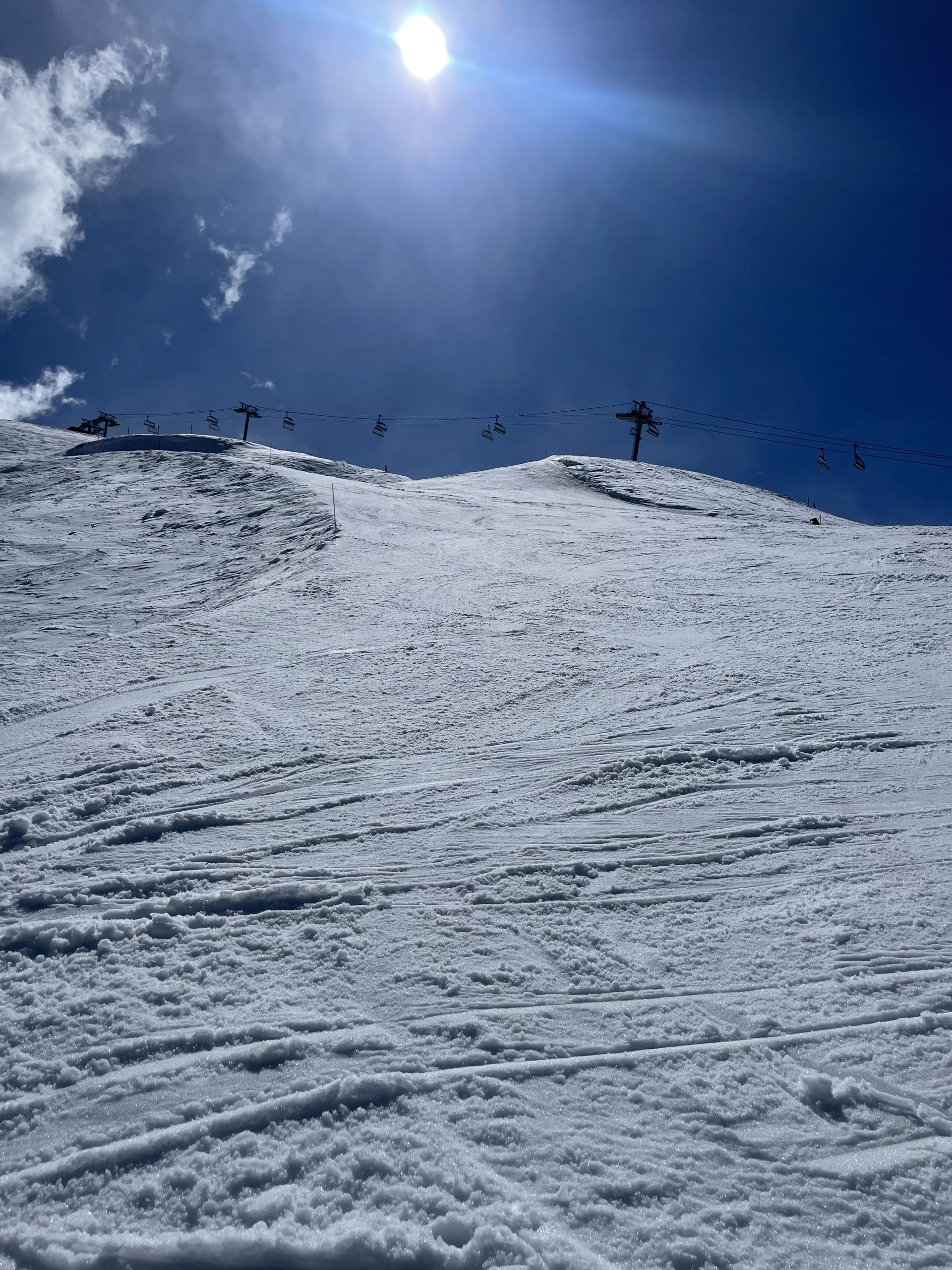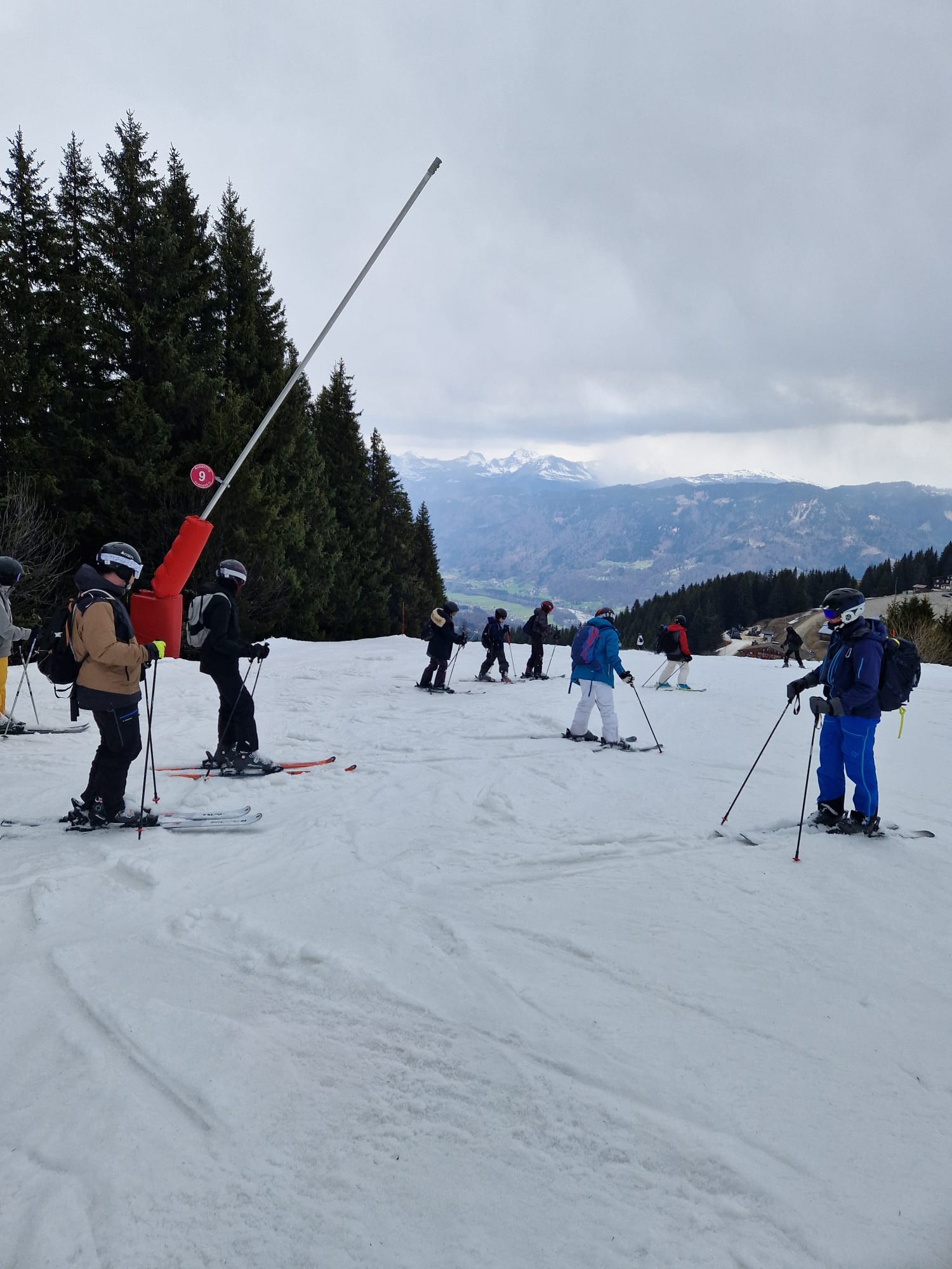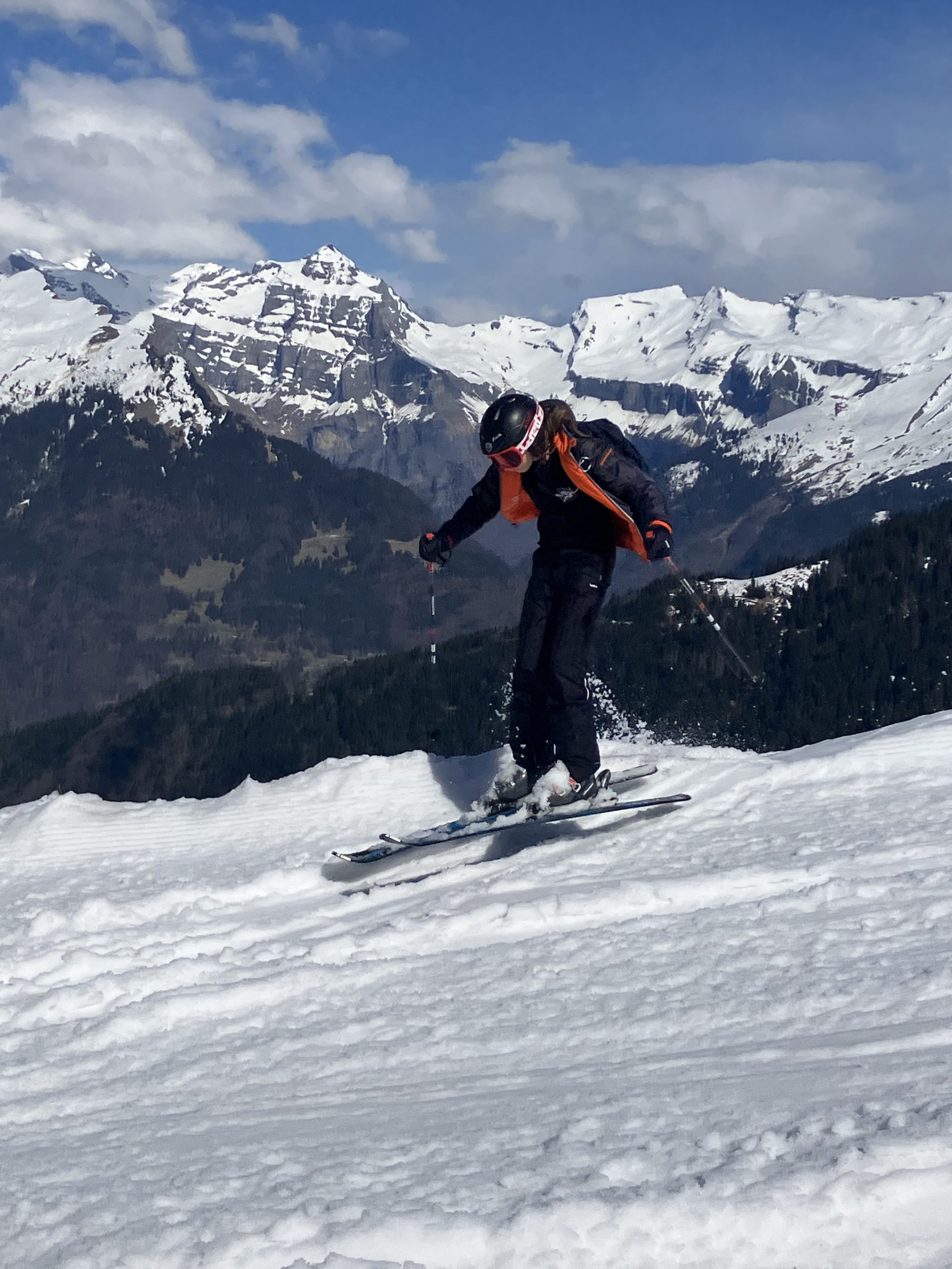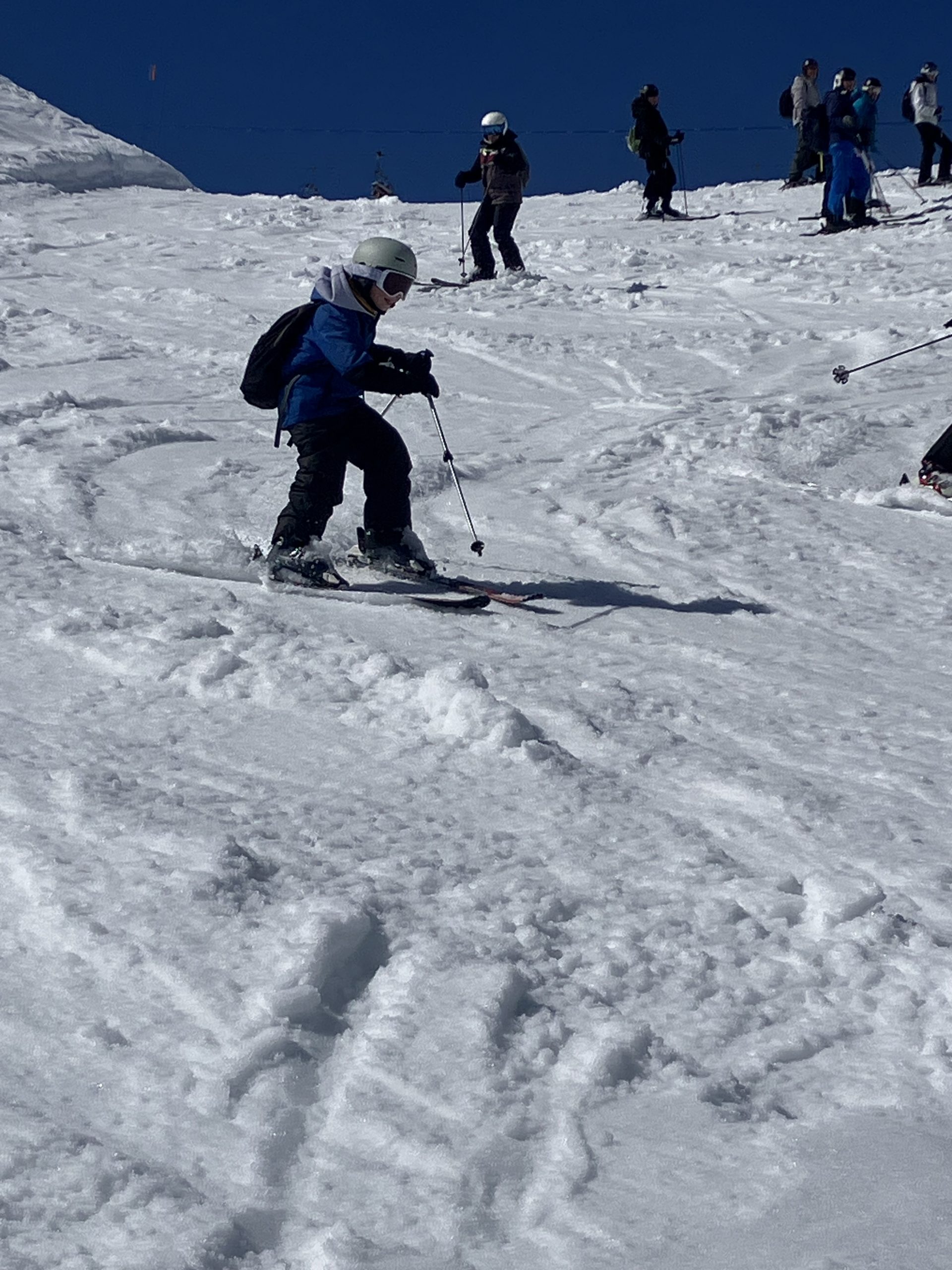 Comme chaque matin, nous nous dirigeons avec entrain vers la remontée Chariande Express, telle une flotte de skieurs déterminés vers les sommets de la montagne des Carroz. Nous entamons notre journée par une série de virages subtils avant de nous lancer dans un grand schuss sur la « Perce-Neige » (bleue), suivi de la verte « Molliachets ». Voilà un échauffement exquis qui nous prépare à affronter la « Rhodos » (rouge), un petit aperçu de la « Combe haut » (bleue), et le boulevard « Zorta » (rouge). Cette matinée témoigne des progrès époustouflants de chaque élève, qui, à chaque descente, semble défier les lois de la gravité avec une aisance inégalée !