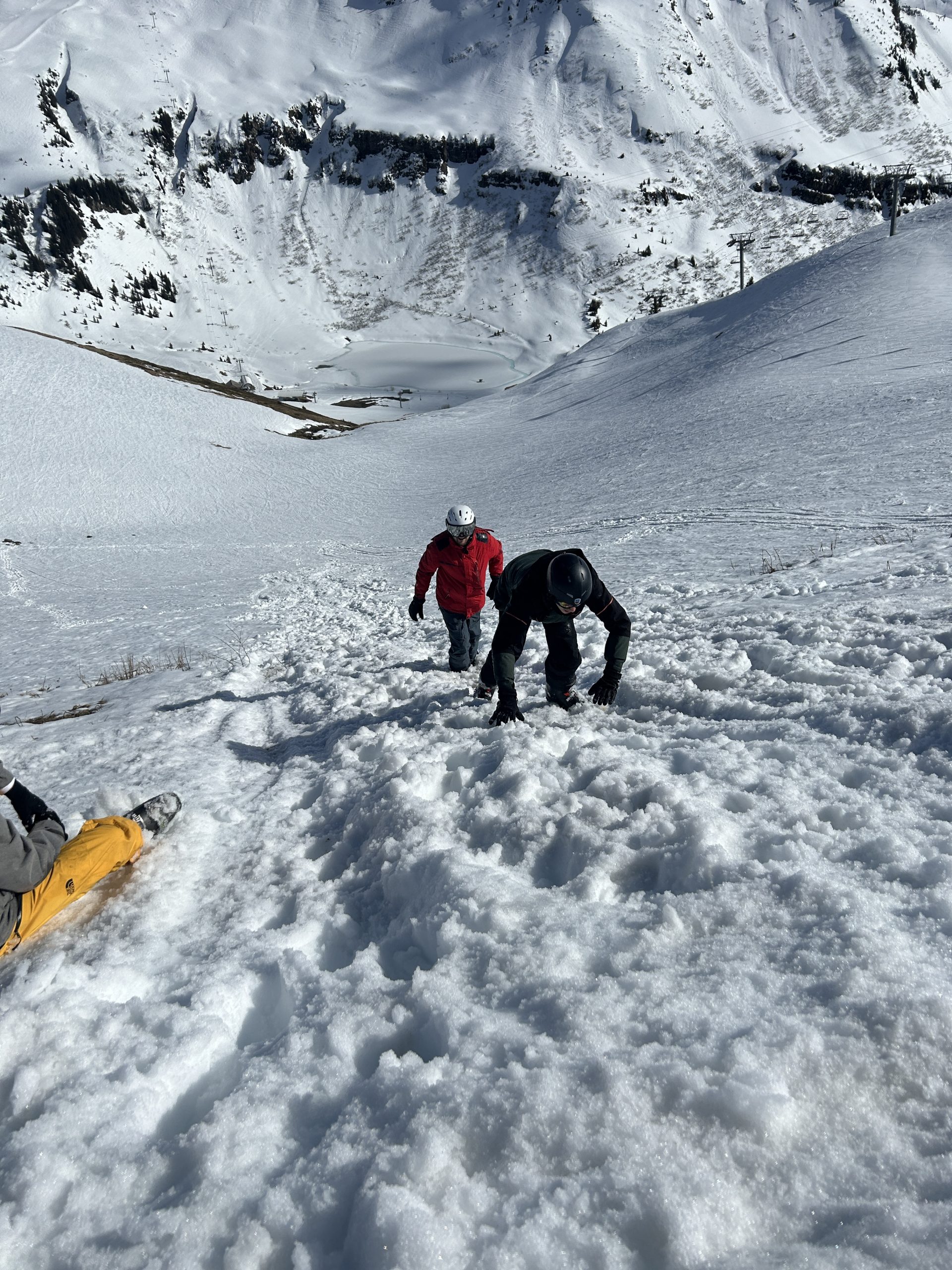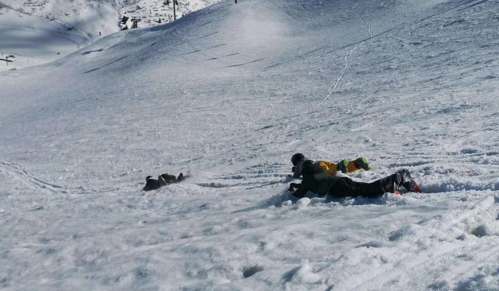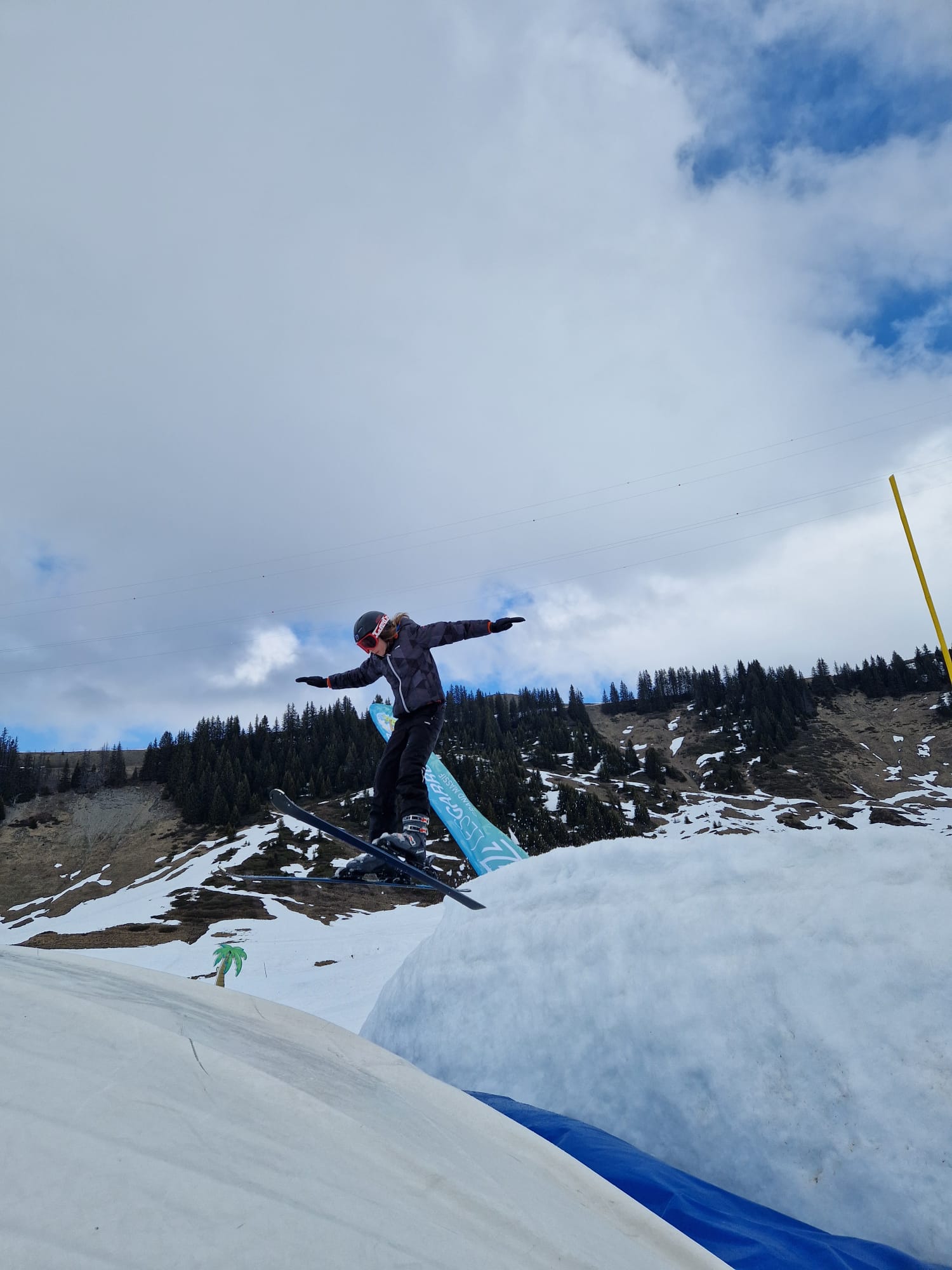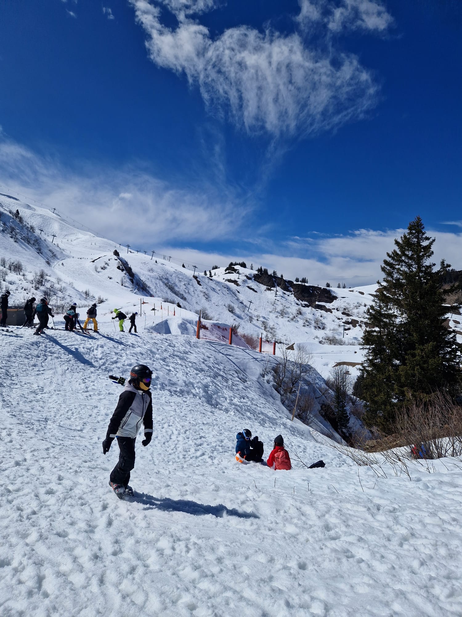 Après cette aventure épique, nous avons pris nos marques dans le snowpark, où nous avons tenté nos premières figures sur les bosses. Suit alors un pique-nique bien mérité, où les rires et les anecdotes fusent.