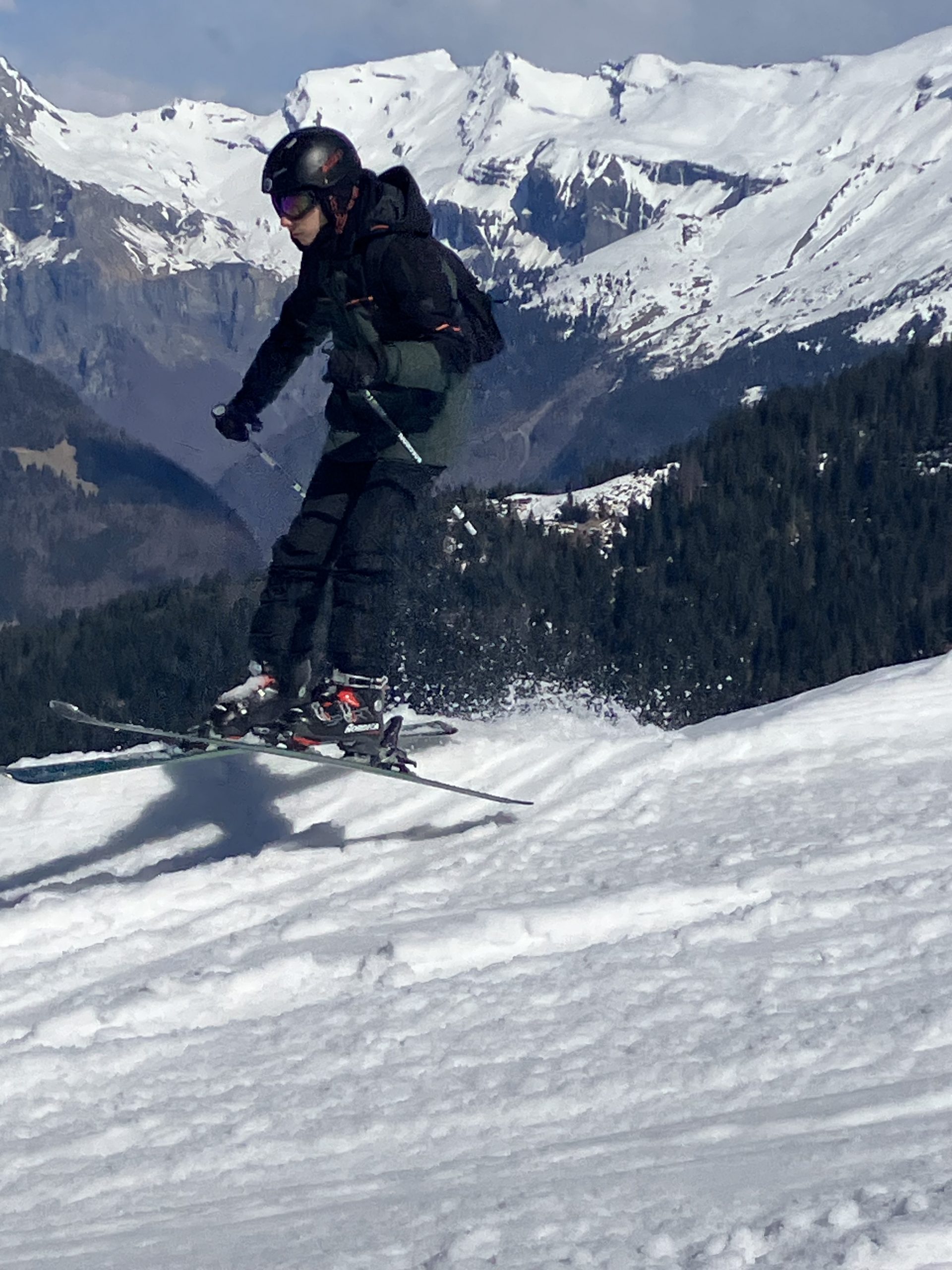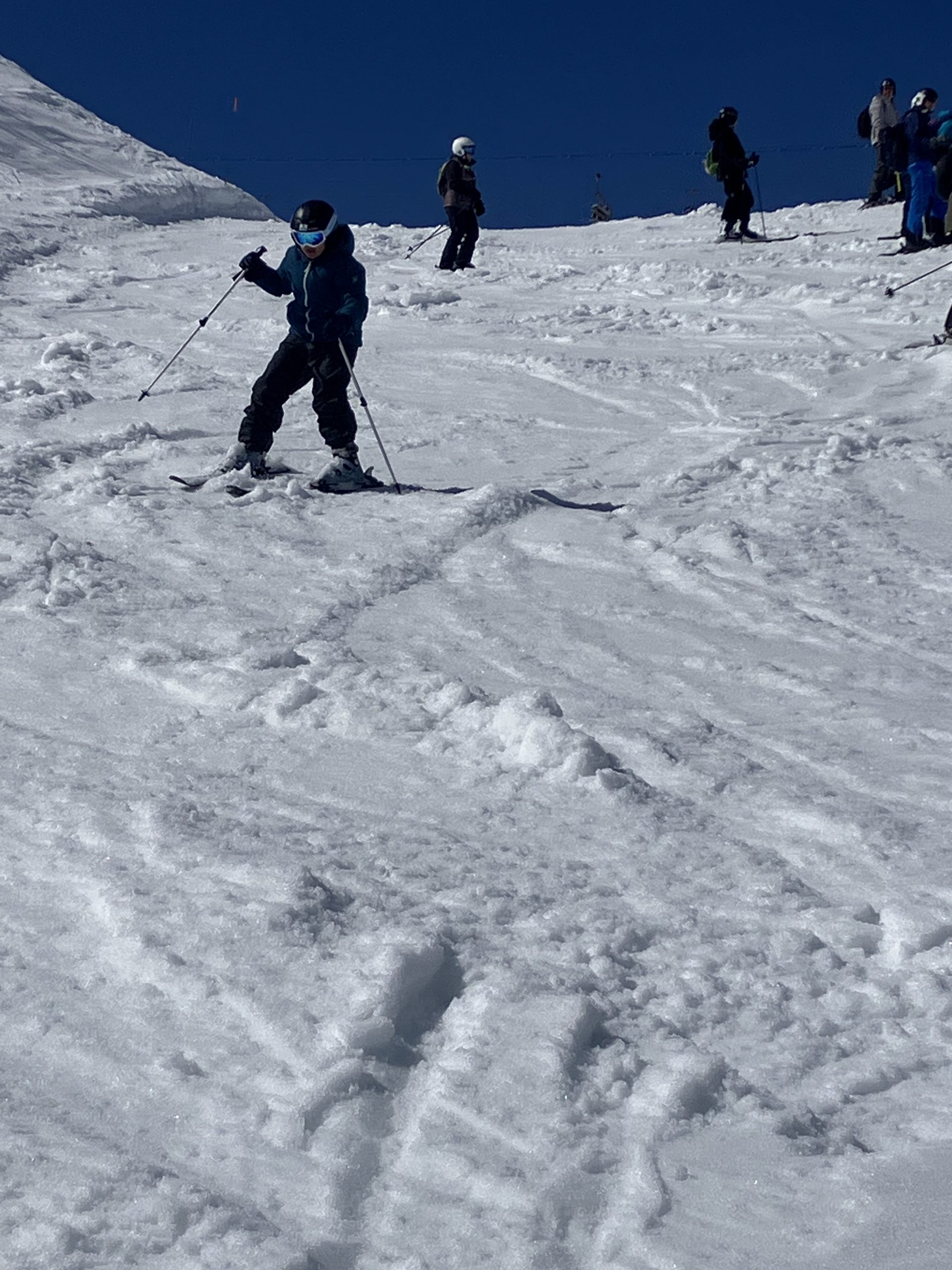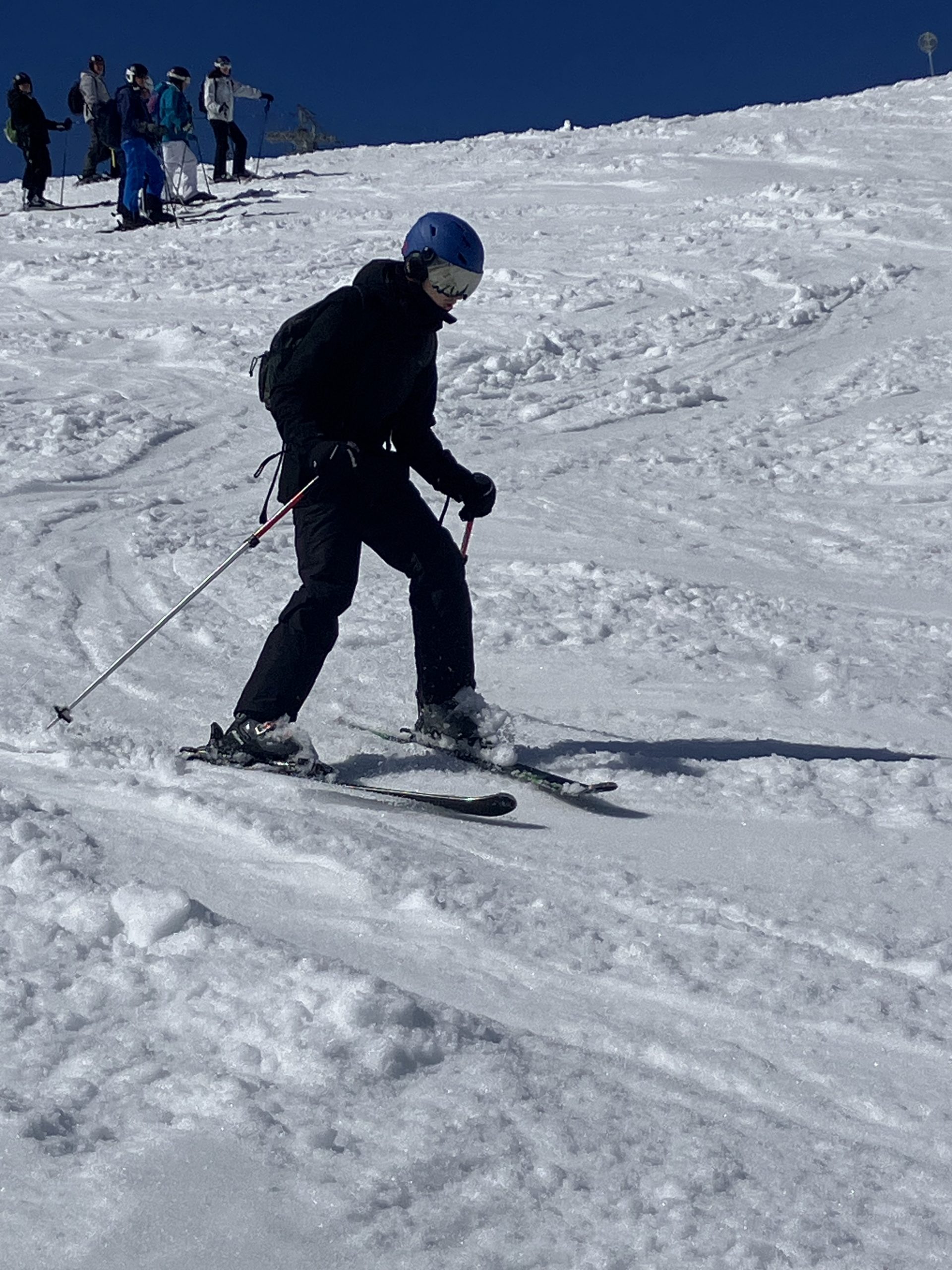 La matinée débute sur une note énergique avec une descente de la magnifique piste rouge « Marmotte » pour échauffer nos muscles, avant de plonger dans la qualité exceptionnelle de la neige en dévalant la piste Aigle Noir dans son intégralité. Cette piste noire, jonchée de bosses, a mis à l’épreuve nos intrépides skieurs, et Adam a perdu un ski, et avec un esprit combatif, il a fait face à la situation avec bravoure. Dévalant les derniers mètres sur ses fesses, il a su maintenir son équilibre tout en glissant avec détermination.