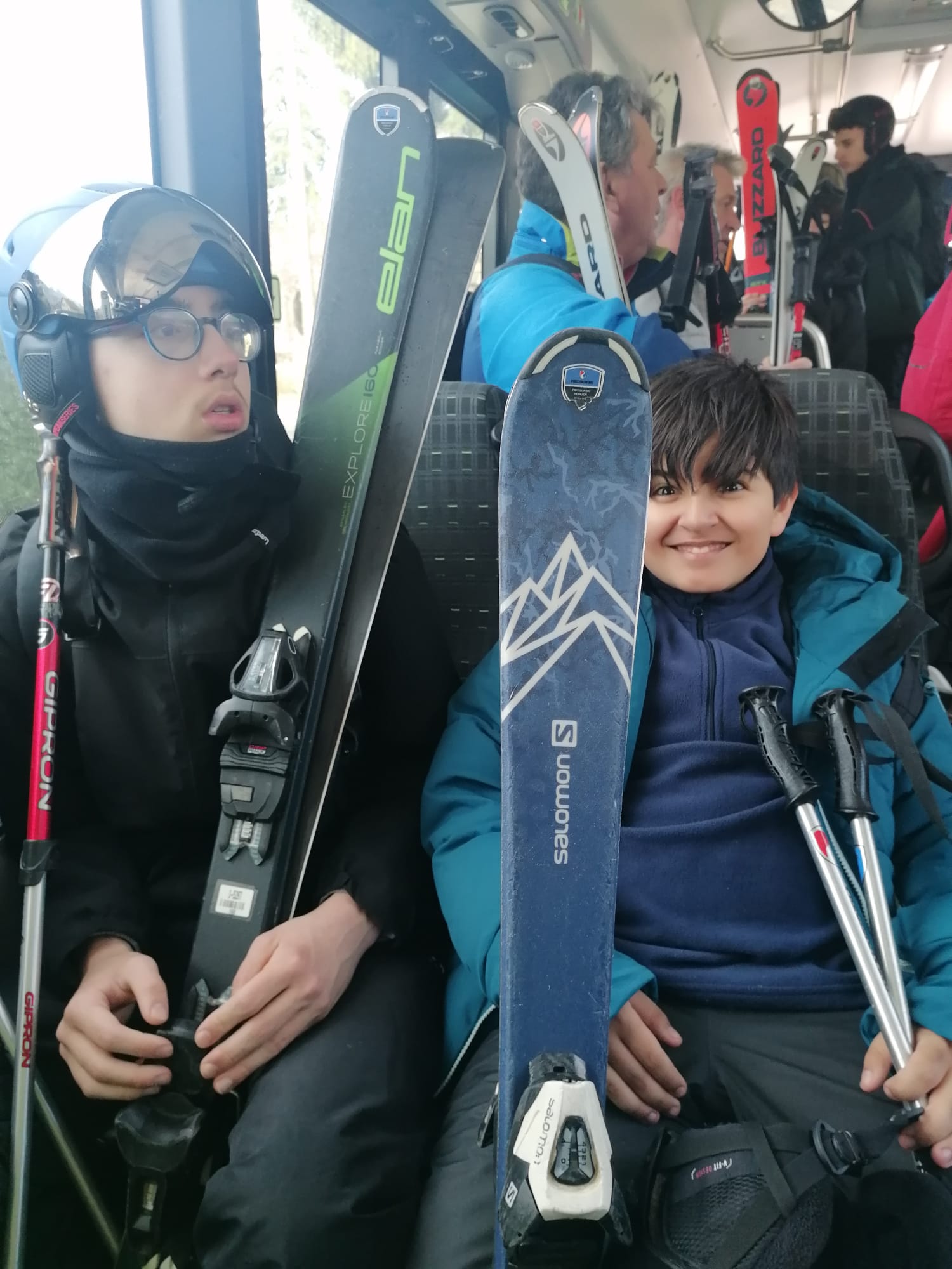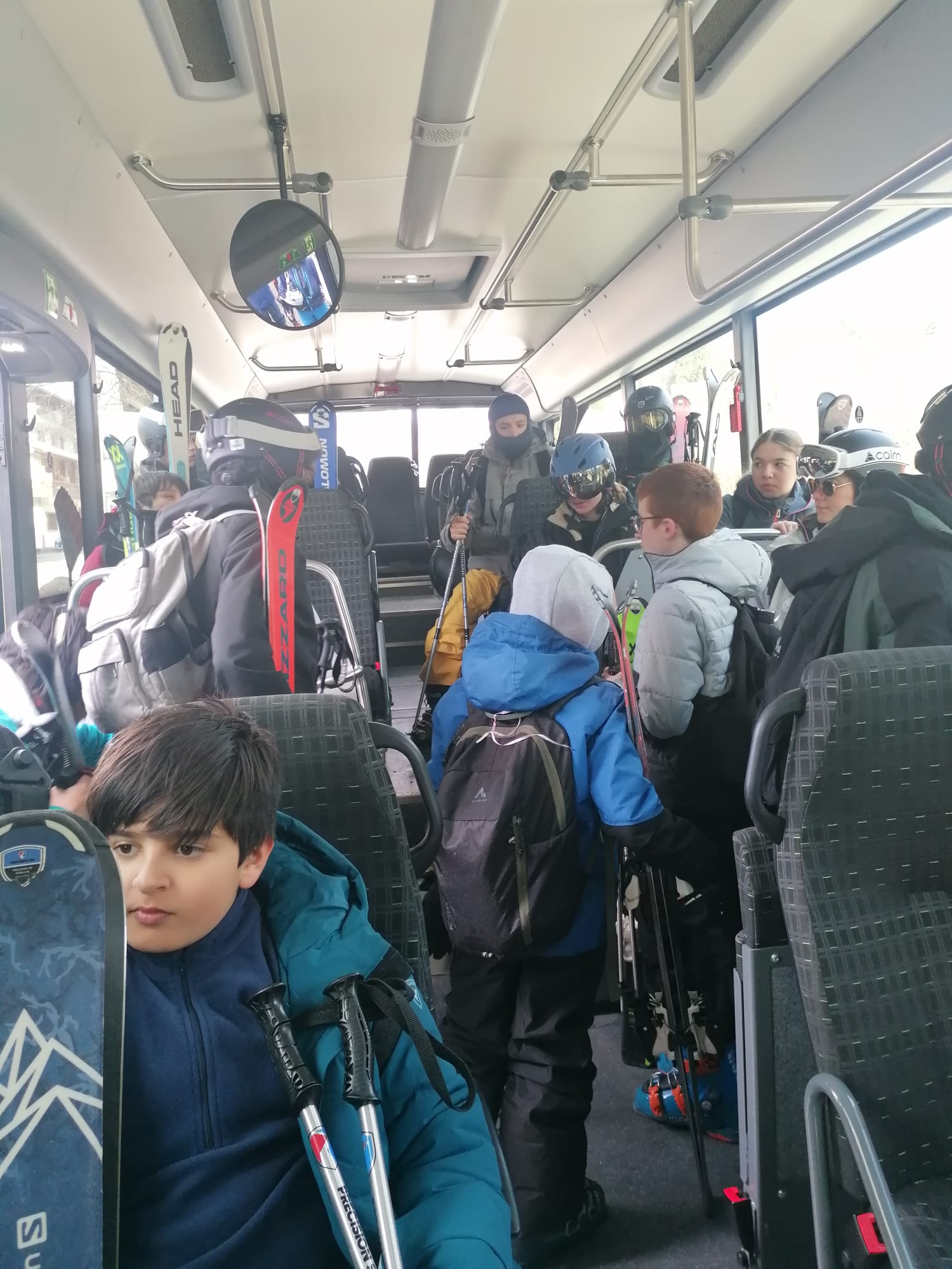 Comme chaque matin, nous étions à 9h35 devant la navette, tous équipés ; Casque, bâtons, skis, masque, crème solaire, stick à lèvres, gourde pleine, pique-nique et forfait.