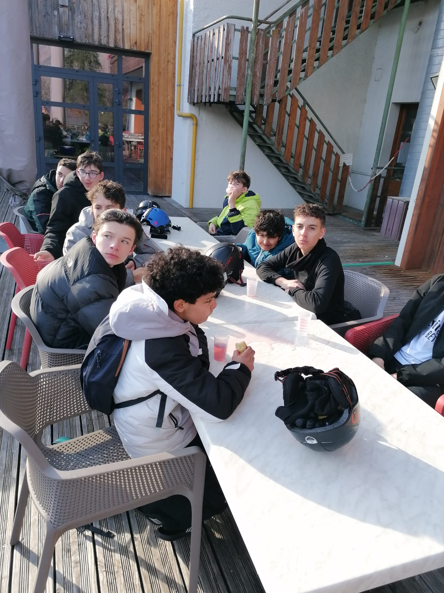 Pour l’après-midi, Lino, Adam et Naëll se joignent à notre joyeuse bande. Nous complétons la « Dahu » (bleue) puis reprenons le « Chariande Express ». Grâce au fabuleux système des binômes, chacun profite d’un soutien précieux, et l’entraide devient notre mantra. Nous glissons gracieusement sur les bleues « Silice » et « Dolomie » avant de remonter par « Corbalanche ». Afin d’effacer l’épreuve de la veille, nous prenons la sage décision, à l’unanimité, de revisiter la redoutable piste rouge « Chamois ». Quelle satisfaction ! Nous la dévalons en moins de 10-15 minutes, alors que la veille, cela nous avait pris une demi-journée !