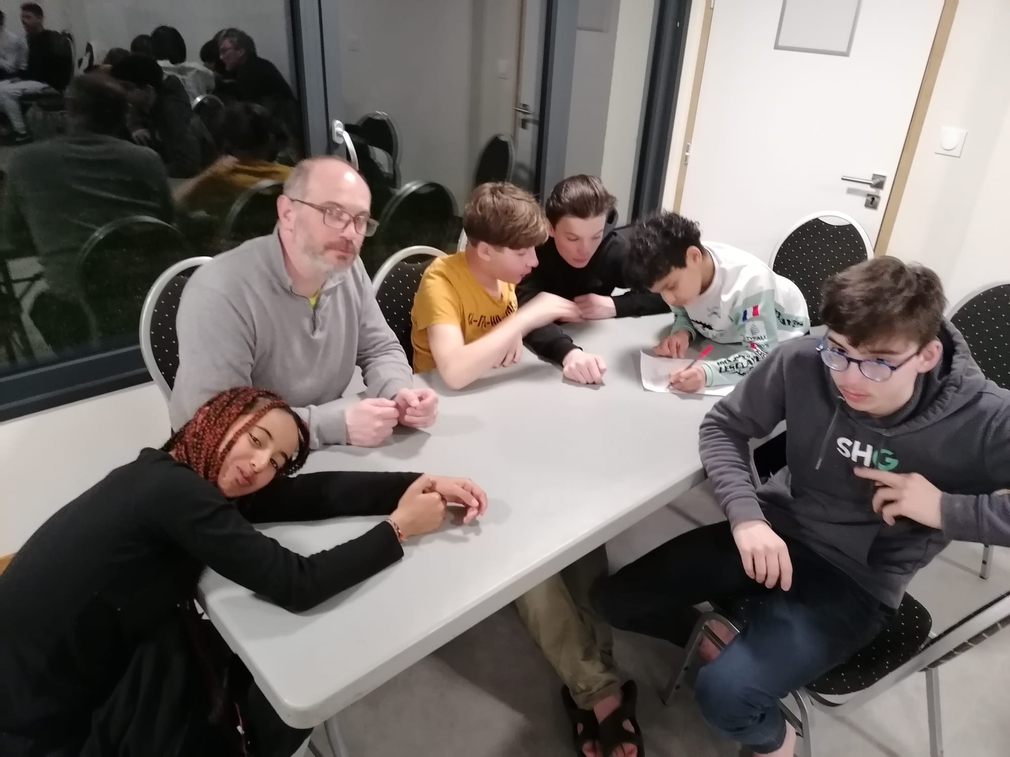 Après le dîner, nous faisons une soirée « Quizz musical ». L’équipe des « Skieurs », constituée de Mayssa, Aurélien, Gaspard V., Clément, Mehdi et Gaspard L., a gagné avec 57 Points, juste devant l’équipe « Pioupiou » avec 56 Points et l’équipe « PNJ » avec 55 Points, tandis que l’équipe « Génération Miracle » totalise 45 Points.