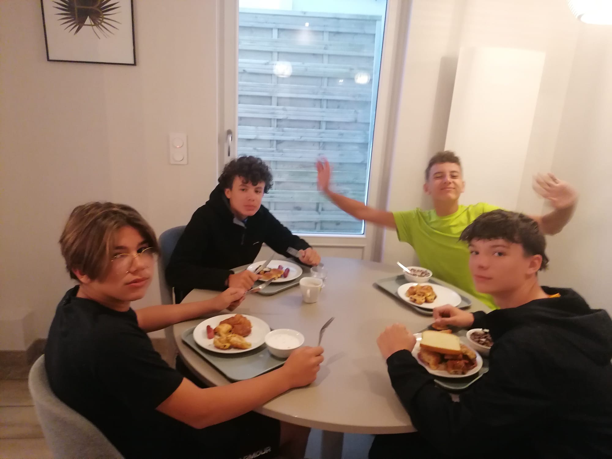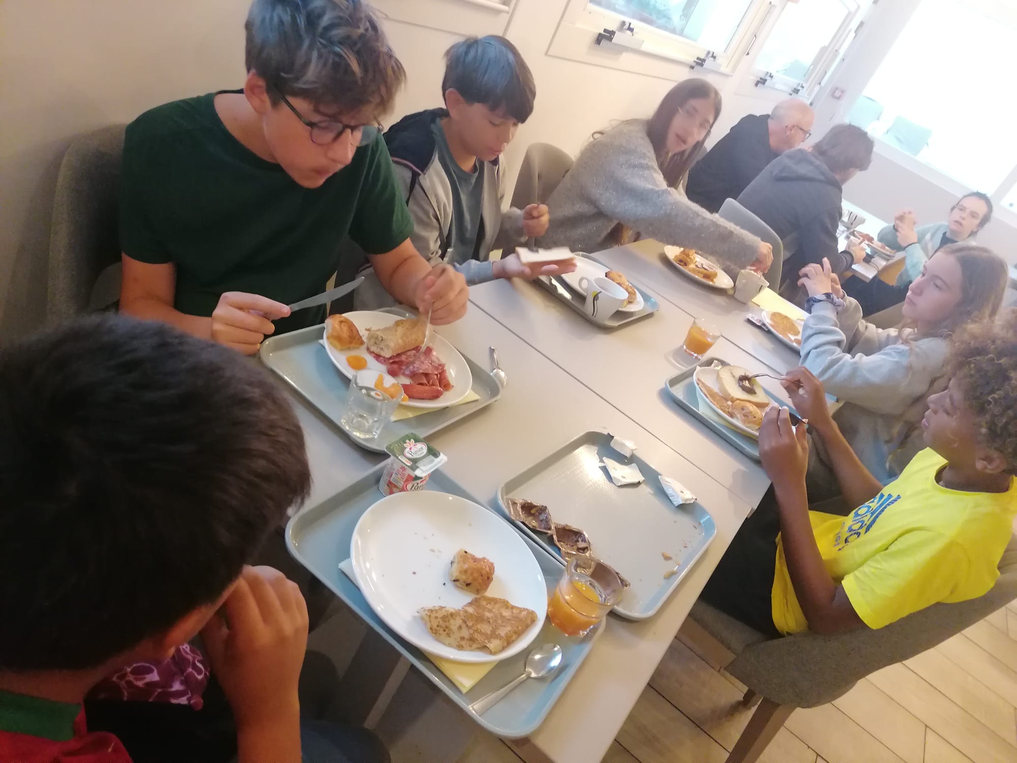 La fatigue de la virée cycliste de la veille s’est invitée au réveil. Ce matin, dans chaque logis, Frédéric, Alexandre et Sandrine ont dû mener une opération de sauvetage matinal. Certains élèves, encore en négociation avec leur oreiller, ont prolongé leur nuit en position verticale, les yeux mi-clos, en attendant que leurs camarades émergent à leur tour. Une ambiance de fin de séjour flottait dans l’air, douce et un peu floue.