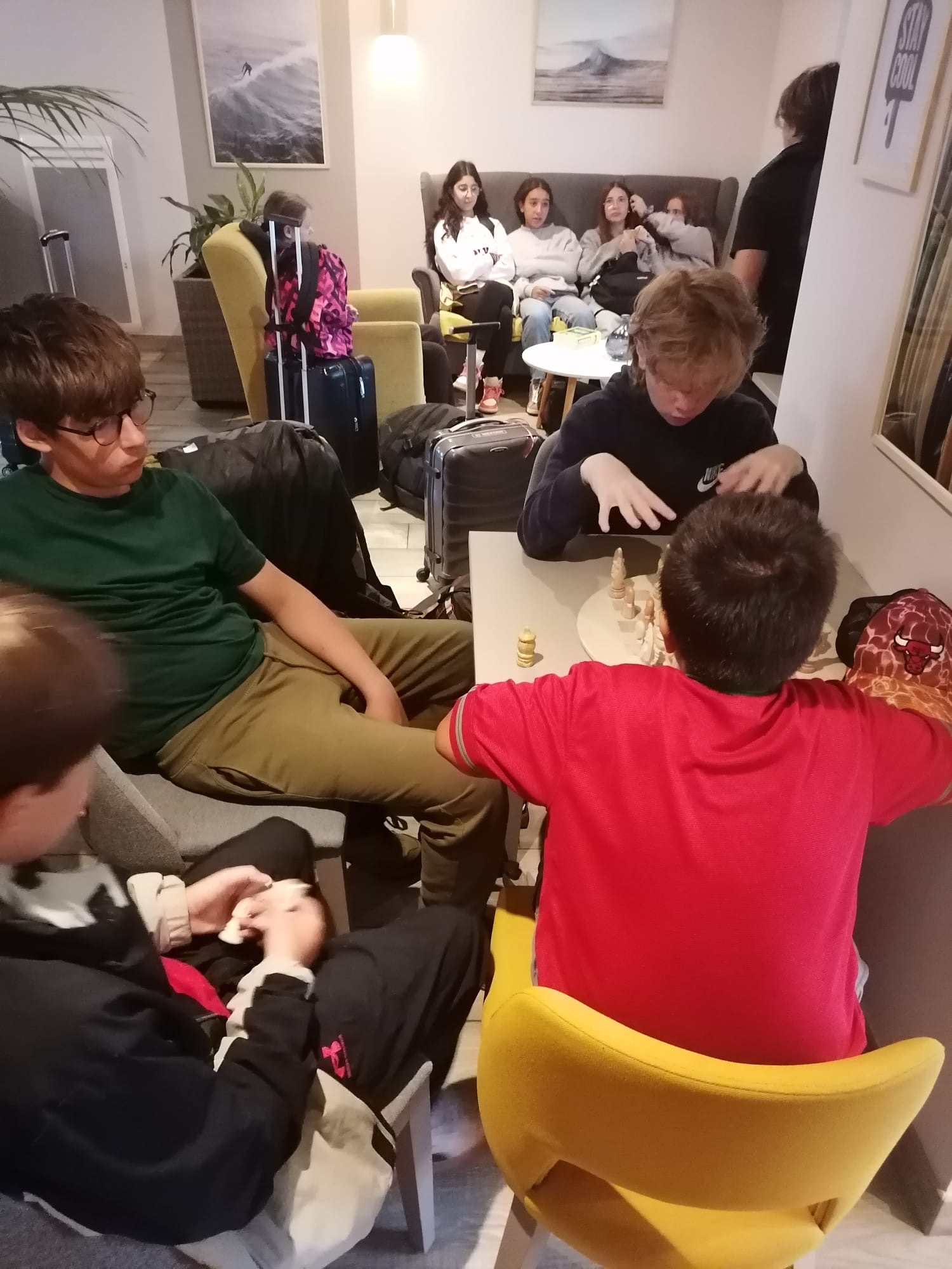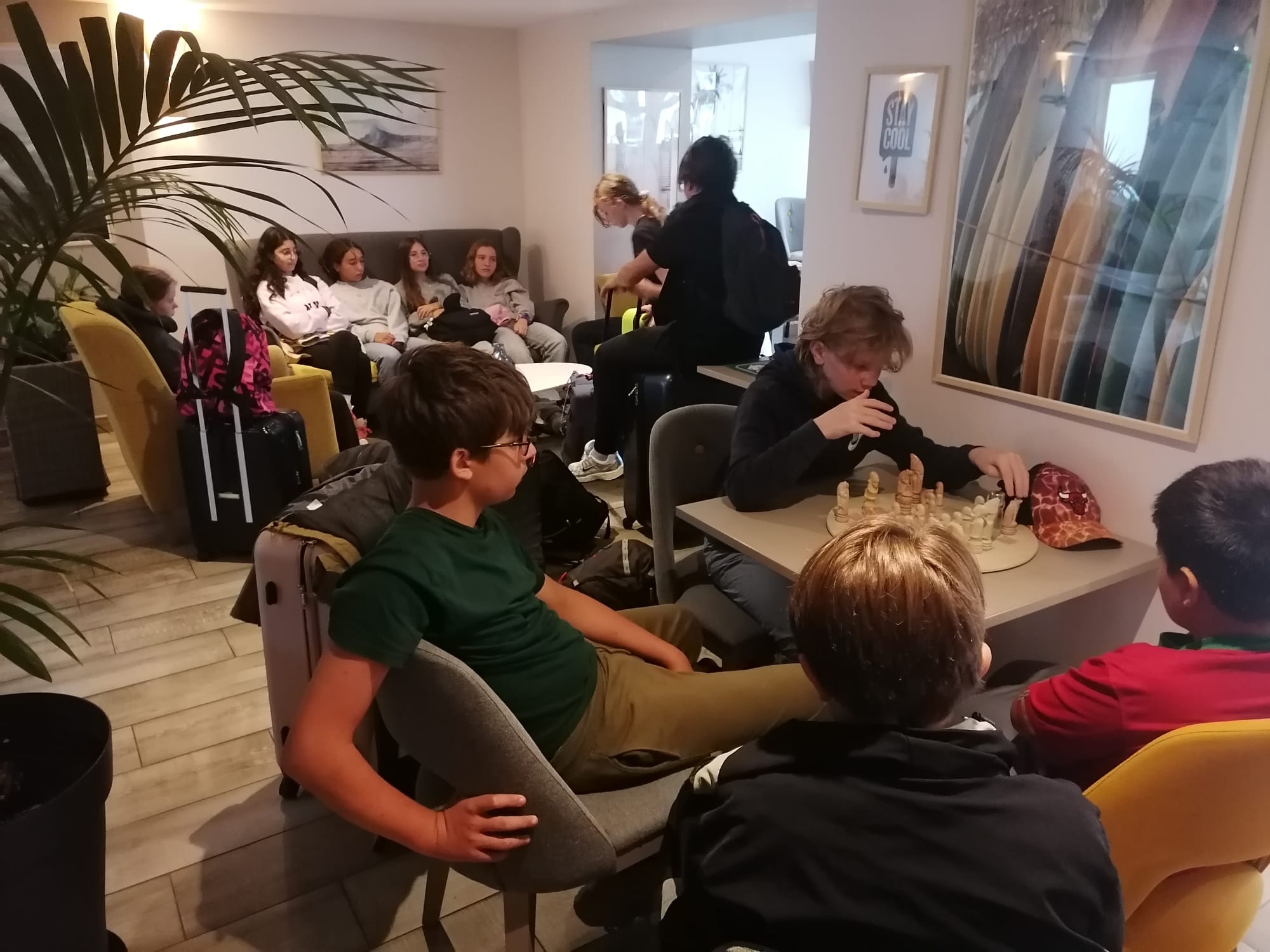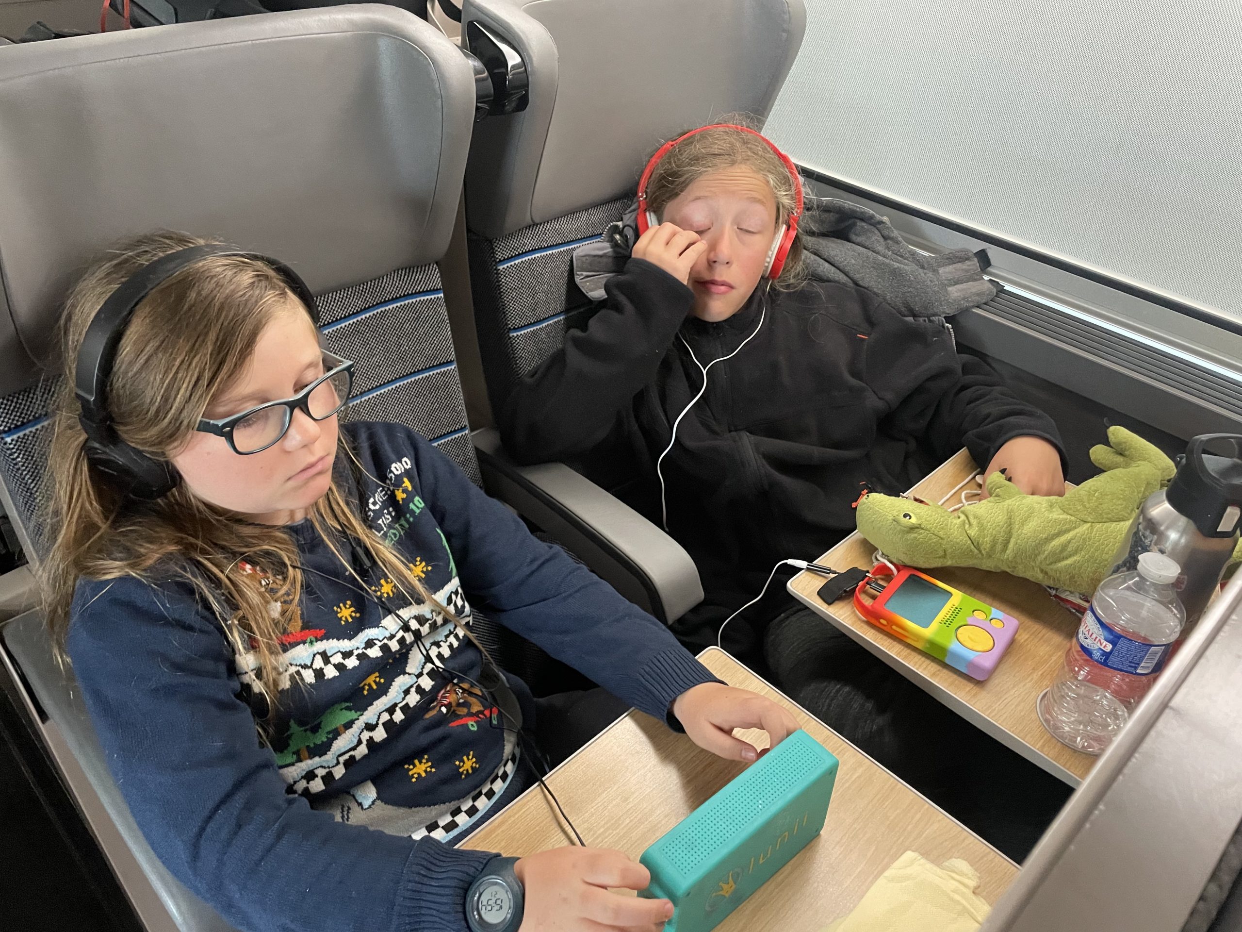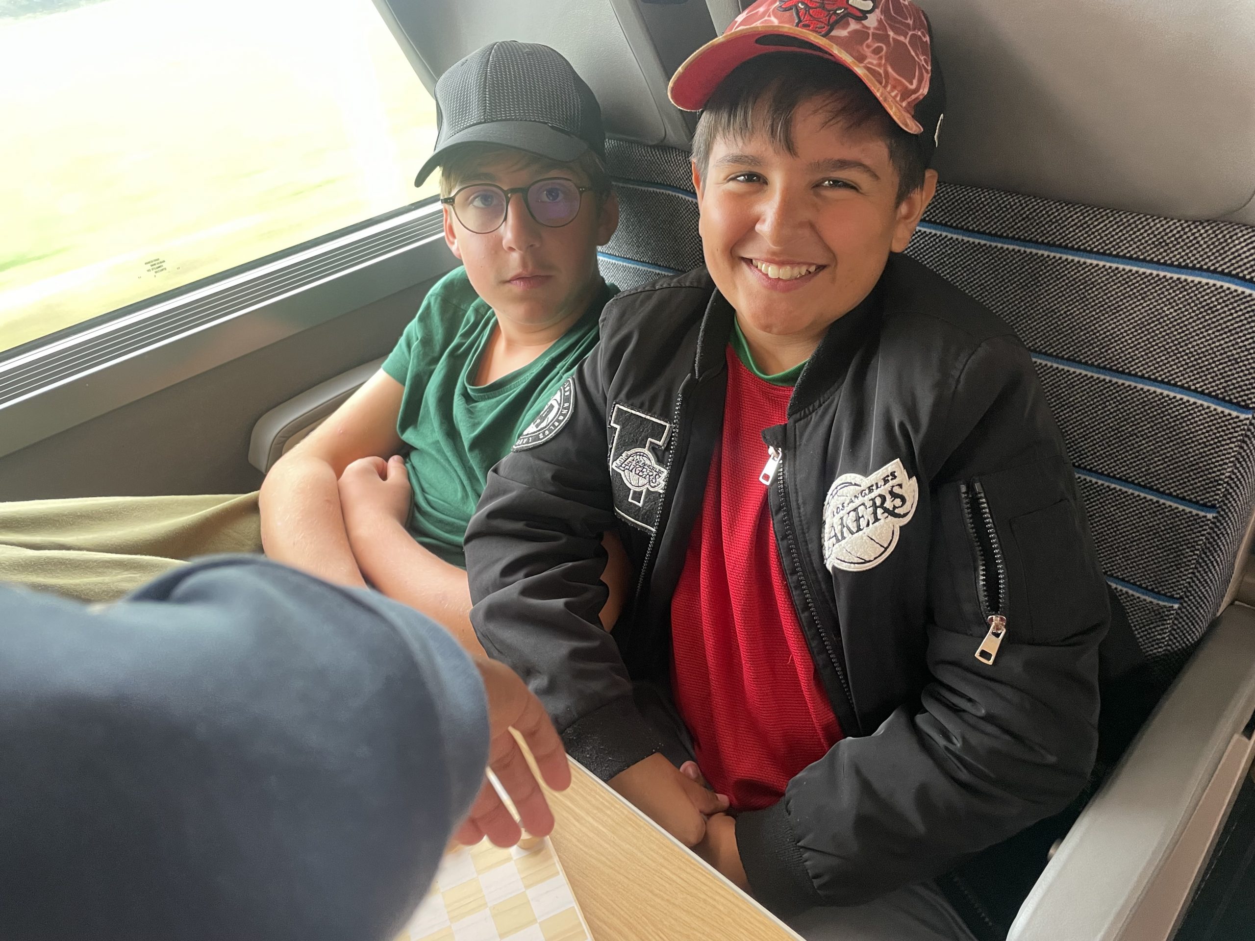Le train s’ébranle, et avec lui, les derniers instants du séjour. À bord, les jeux s’organisent : UNO, échecs, sept familles… Les cartes s’échangent, les pions s’affrontent, les rires fusent. Le wagon devient salon, terrain de jeu, cocon de transition entre le sable et le retour.