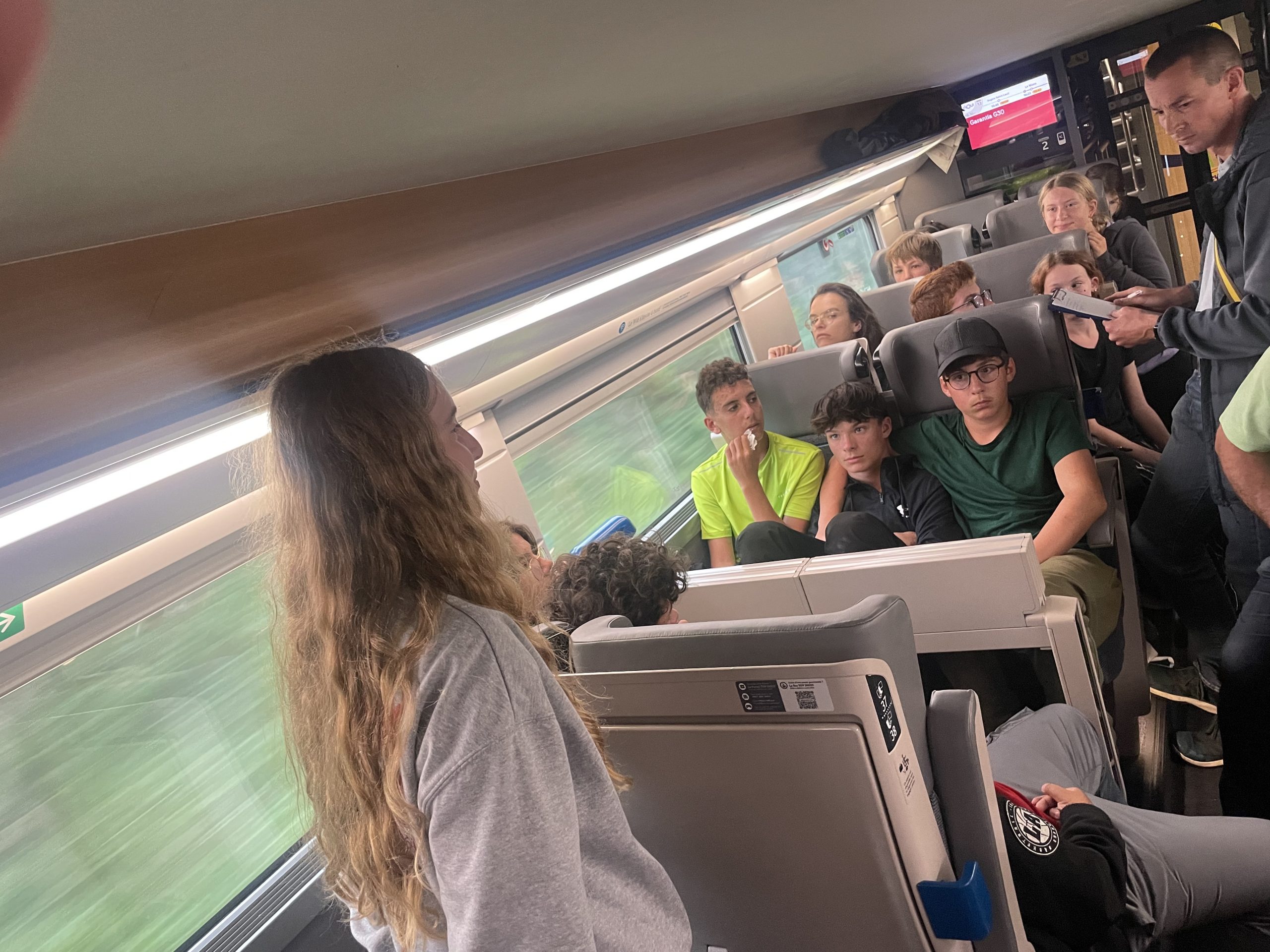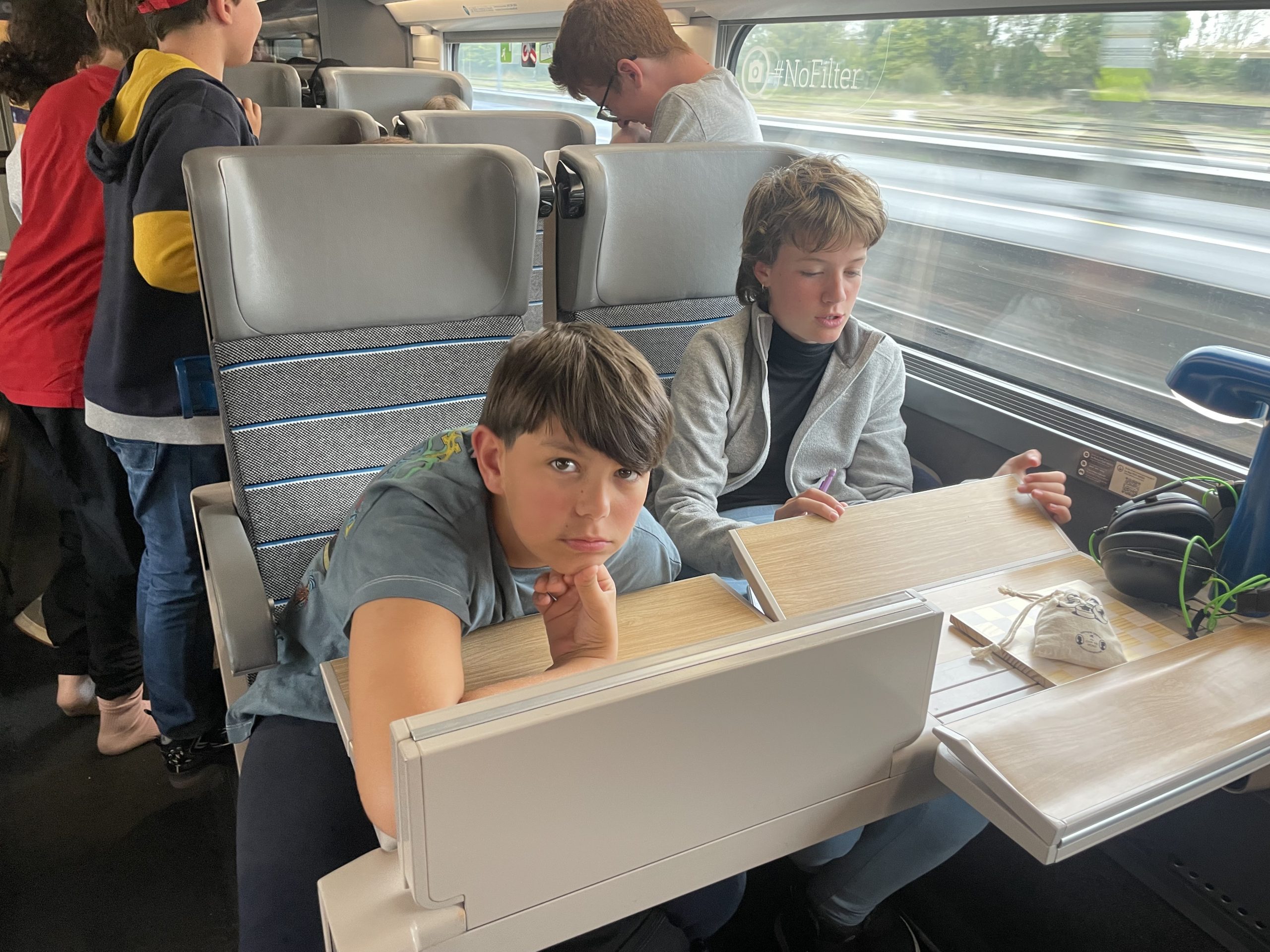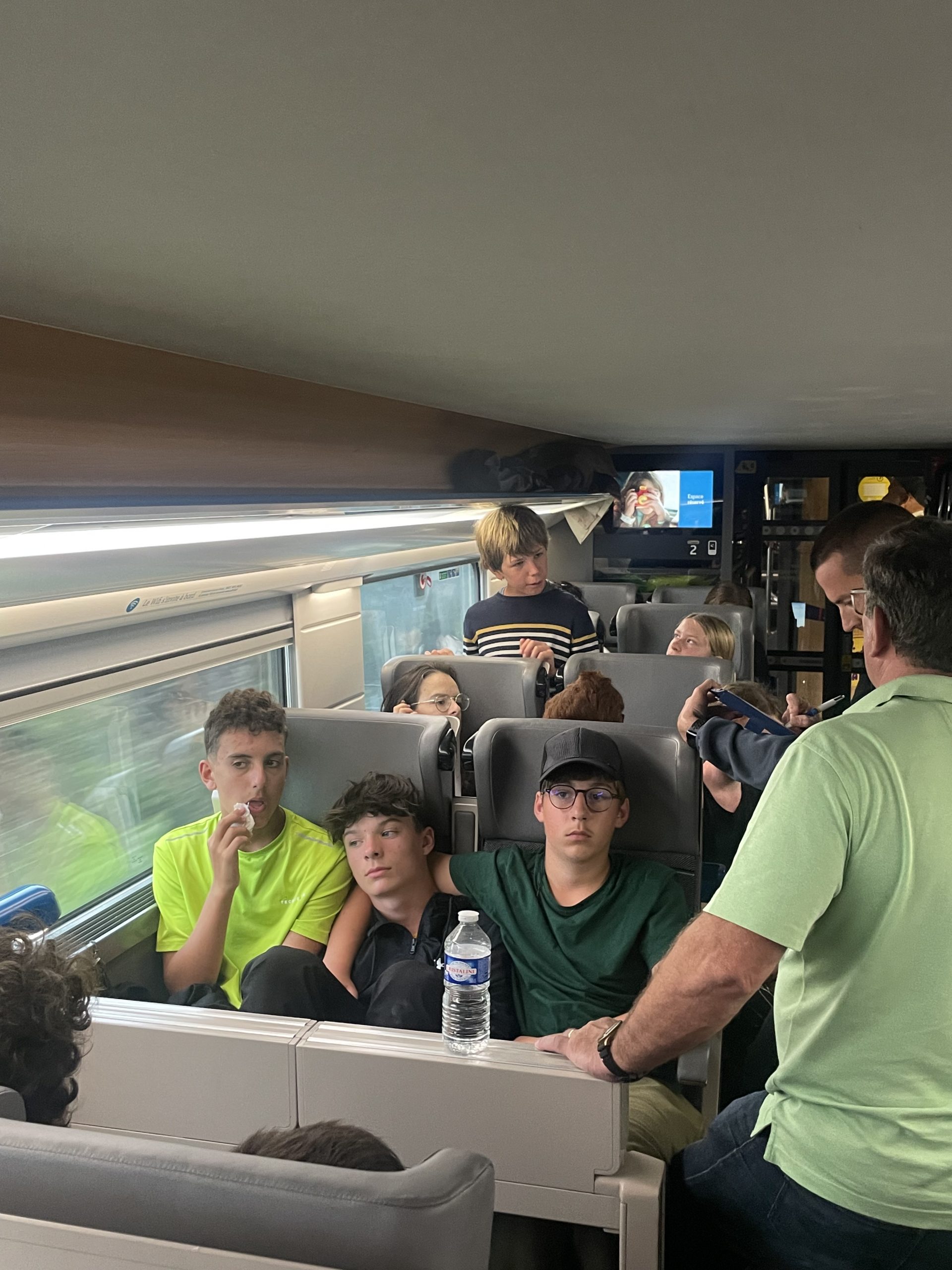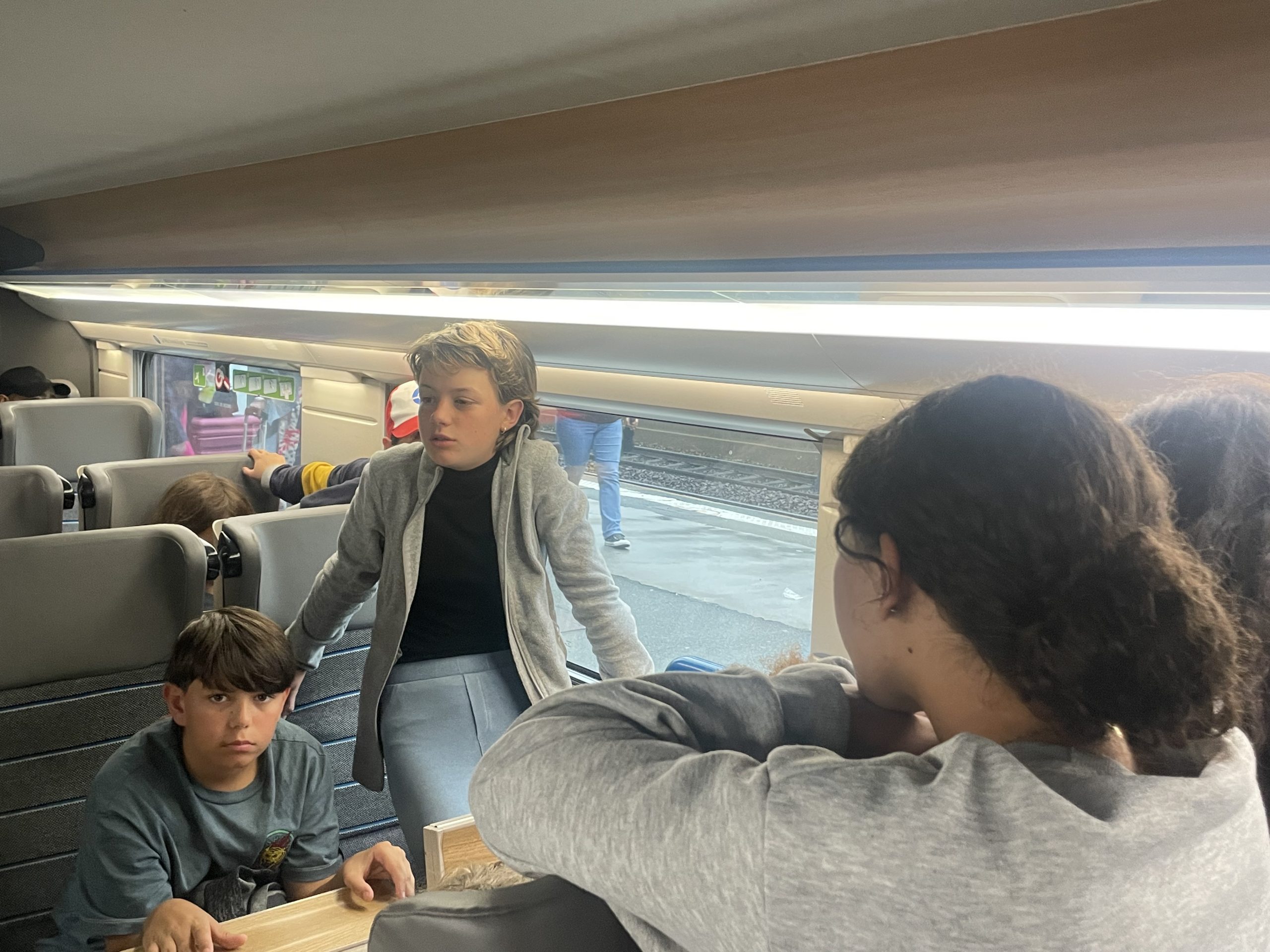 Le TGV est annoncé avec 15 minutes de retard. Rien de dramatique, juste assez pour ajouter une touche de suspense à notre départ. Sur le quai, nous nous rassemblons, Sandrine nous guide vers la voiture attribuée, pendant que Raphaël, Alexandre, Frédéric et Guillaume s’occupent de charger les valises dans les casiers avec la précision d’un équipage de bord.