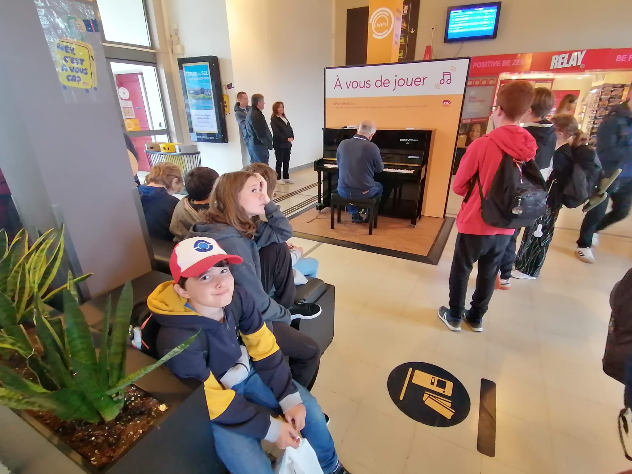À 13h00, retour à la gare. Le temps de savourer notre pique-nique, assis sur les quais, bercés par les notes d’un piano joué par des passants inspirés. Une parenthèse musicale inattendue, presque cinématographique.