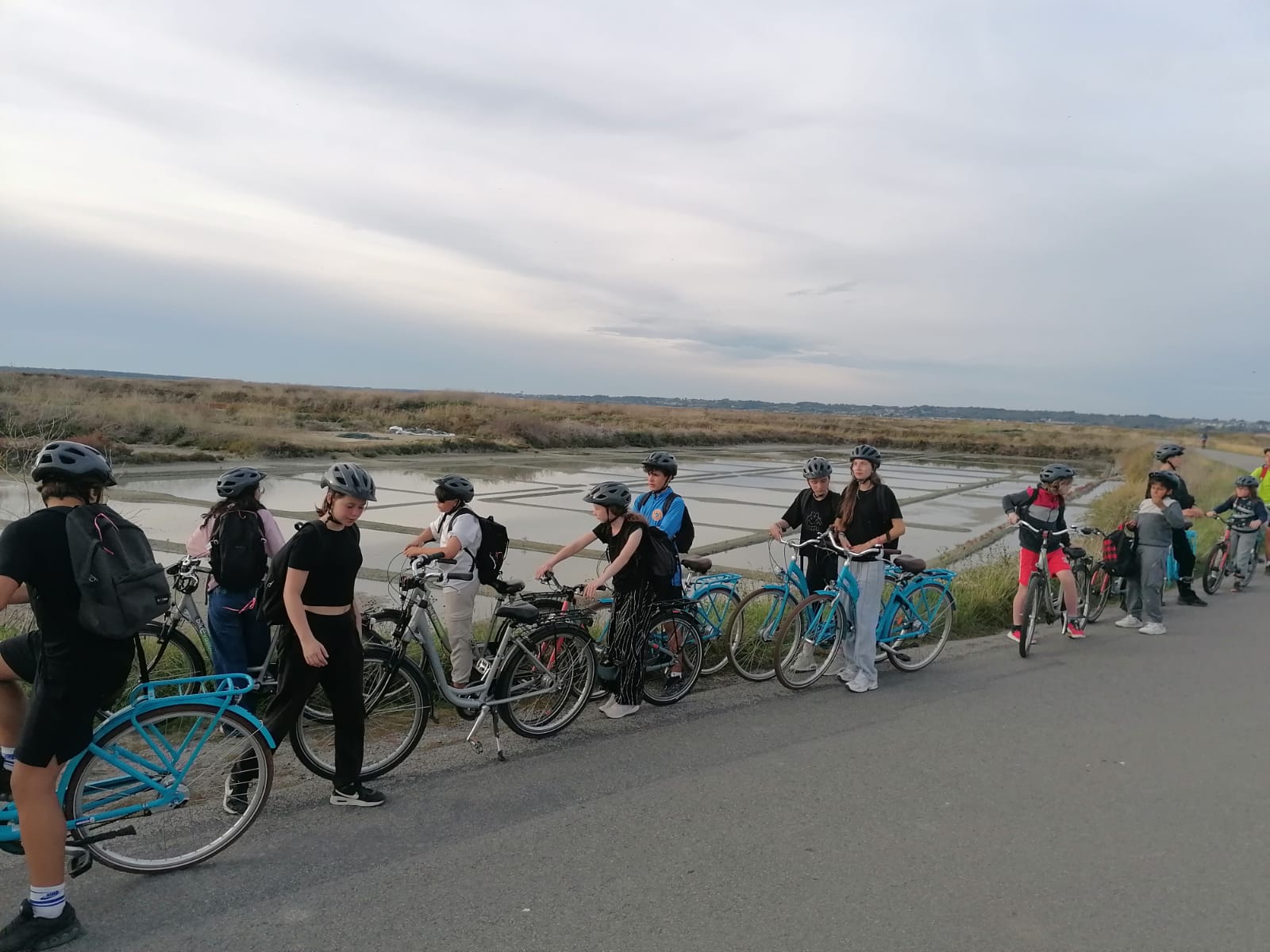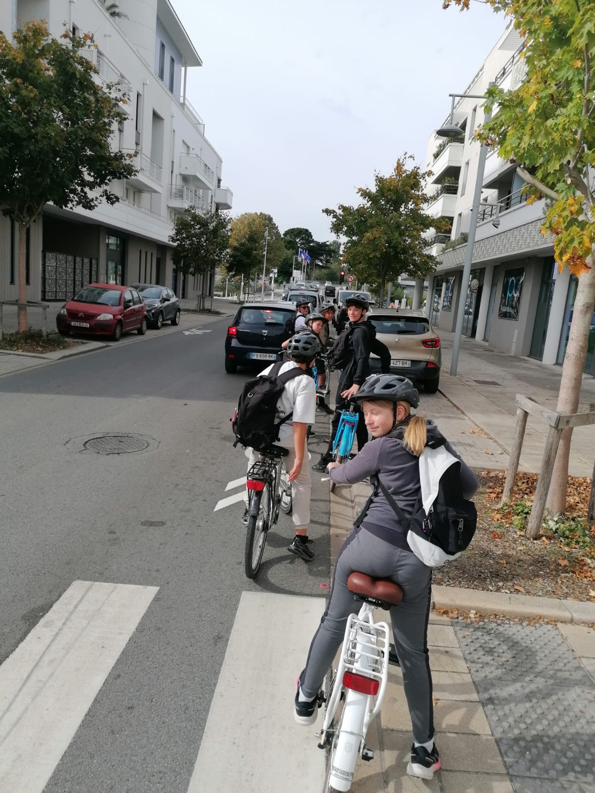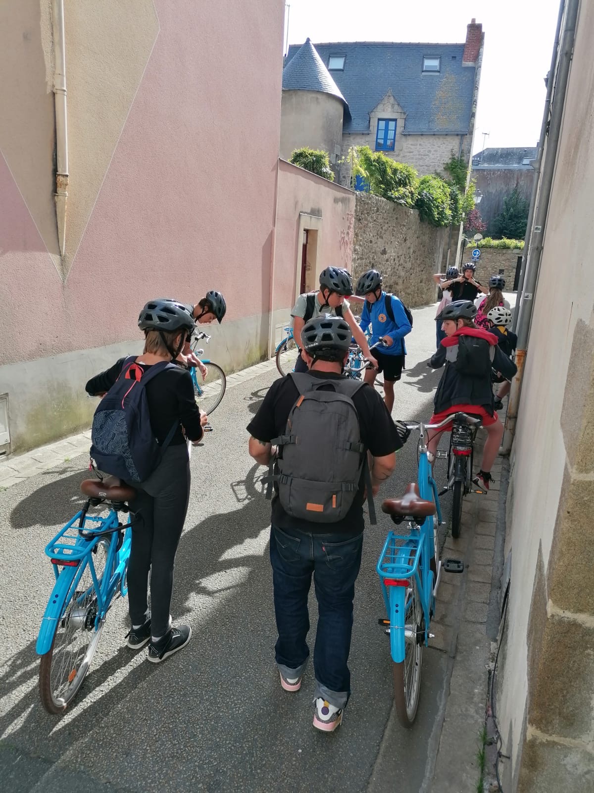 Après un déjeuner pris à l’hôtel, nous avons enfourché nos vélos — réservés la veille — pour une expédition vers Guérande, cité médiévale aux promesses de pierre et de sel. Mais voilà : trente vélos en cortège, c’est un peu comme une caravane dans un labyrinthe. Les coupures de voies automobiles ont ralenti notre avancée, et le temps estimé s’est vu doublé, comme par magie… ou par embouteillage.