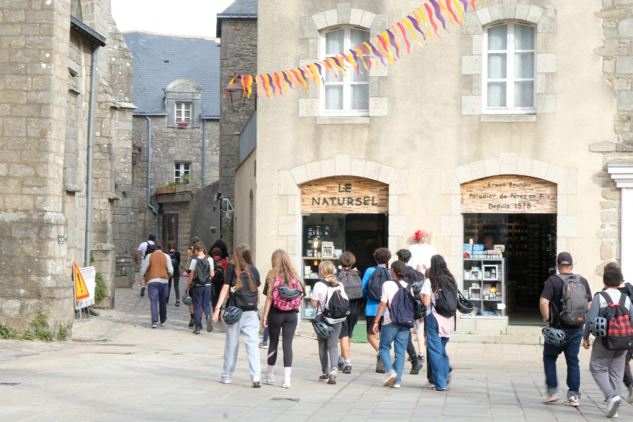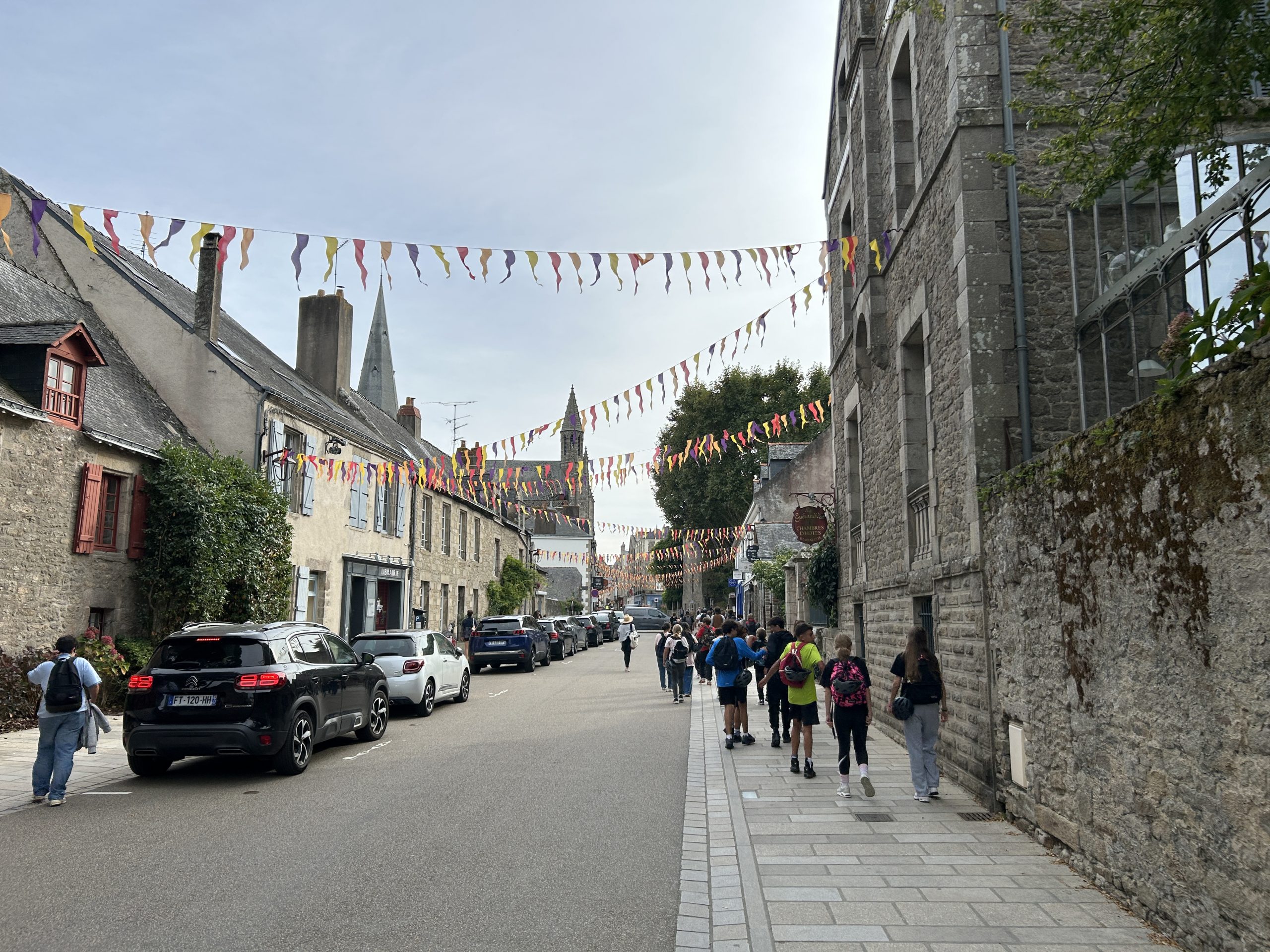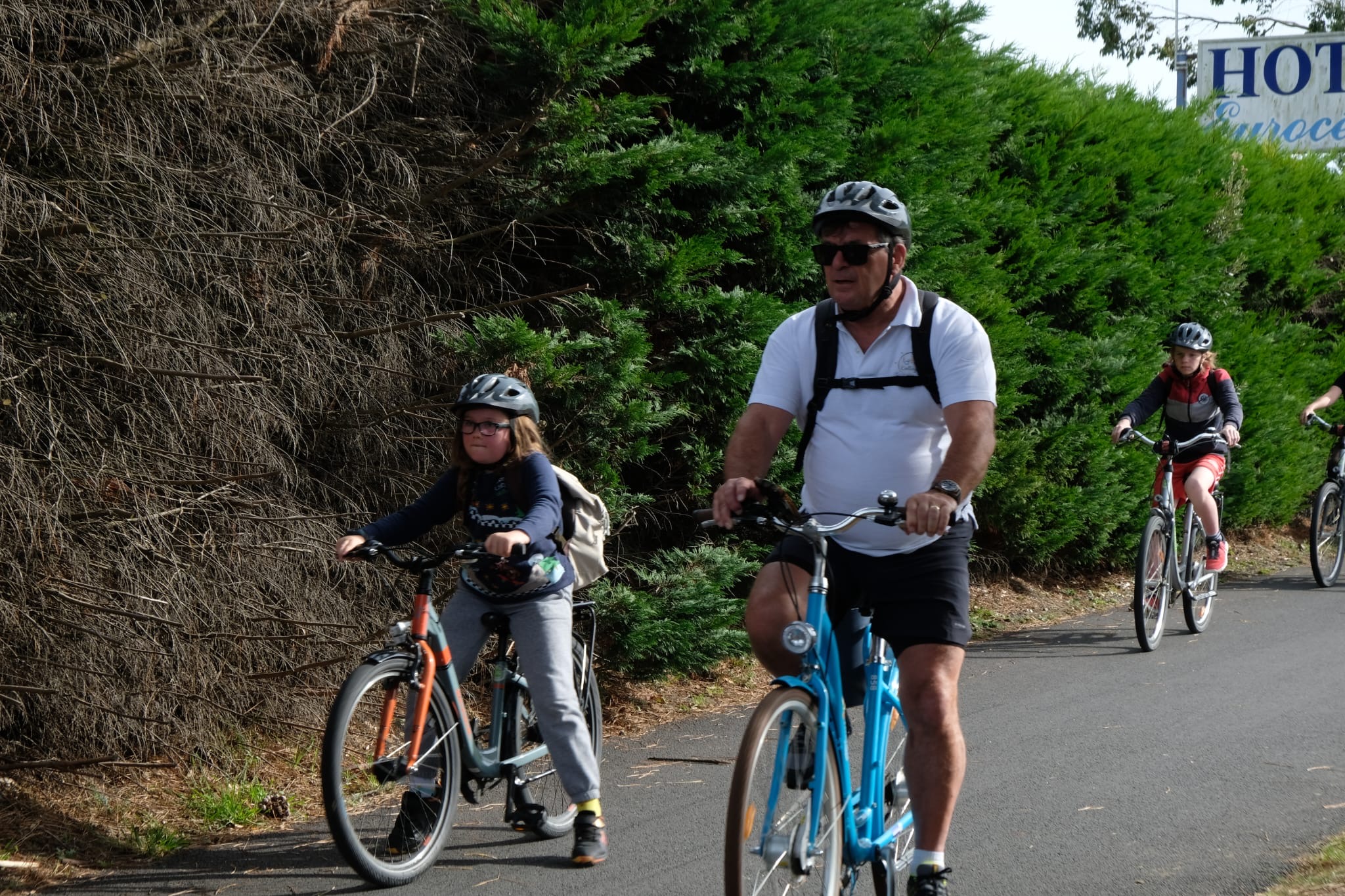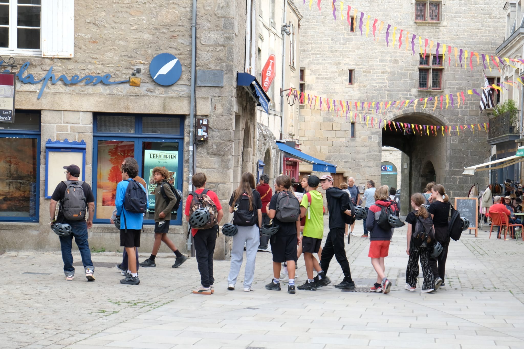 Après un déjeuner pris à l’hôtel, nous avons enfourché nos vélos — réservés la veille — pour une expédition vers Guérande, cité médiévale aux promesses de pierre et de sel. Mais voilà : trente vélos en cortège, c’est un peu comme une caravane dans un labyrinthe. Les coupures de voies automobiles ont ralenti notre avancée, et le temps estimé s’est vu doublé, comme par magie… ou par embouteillage.
