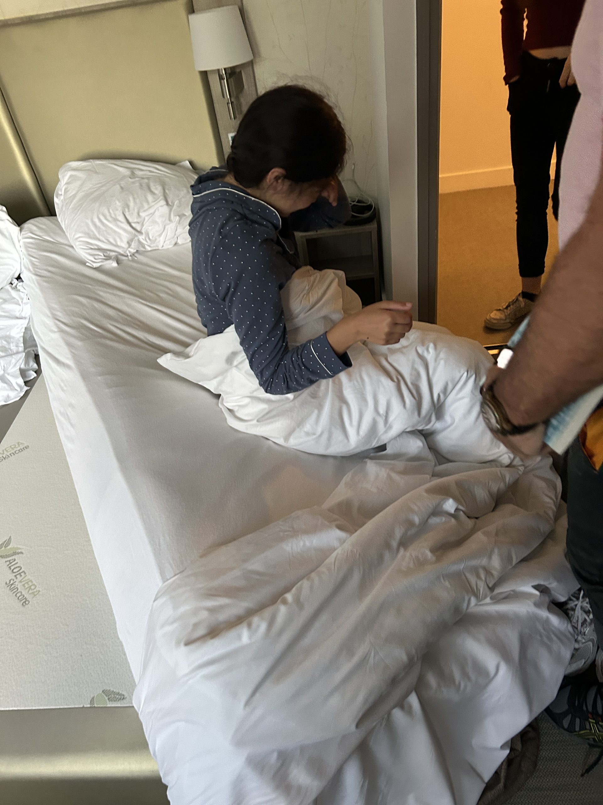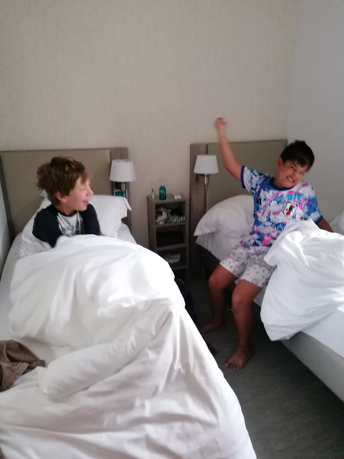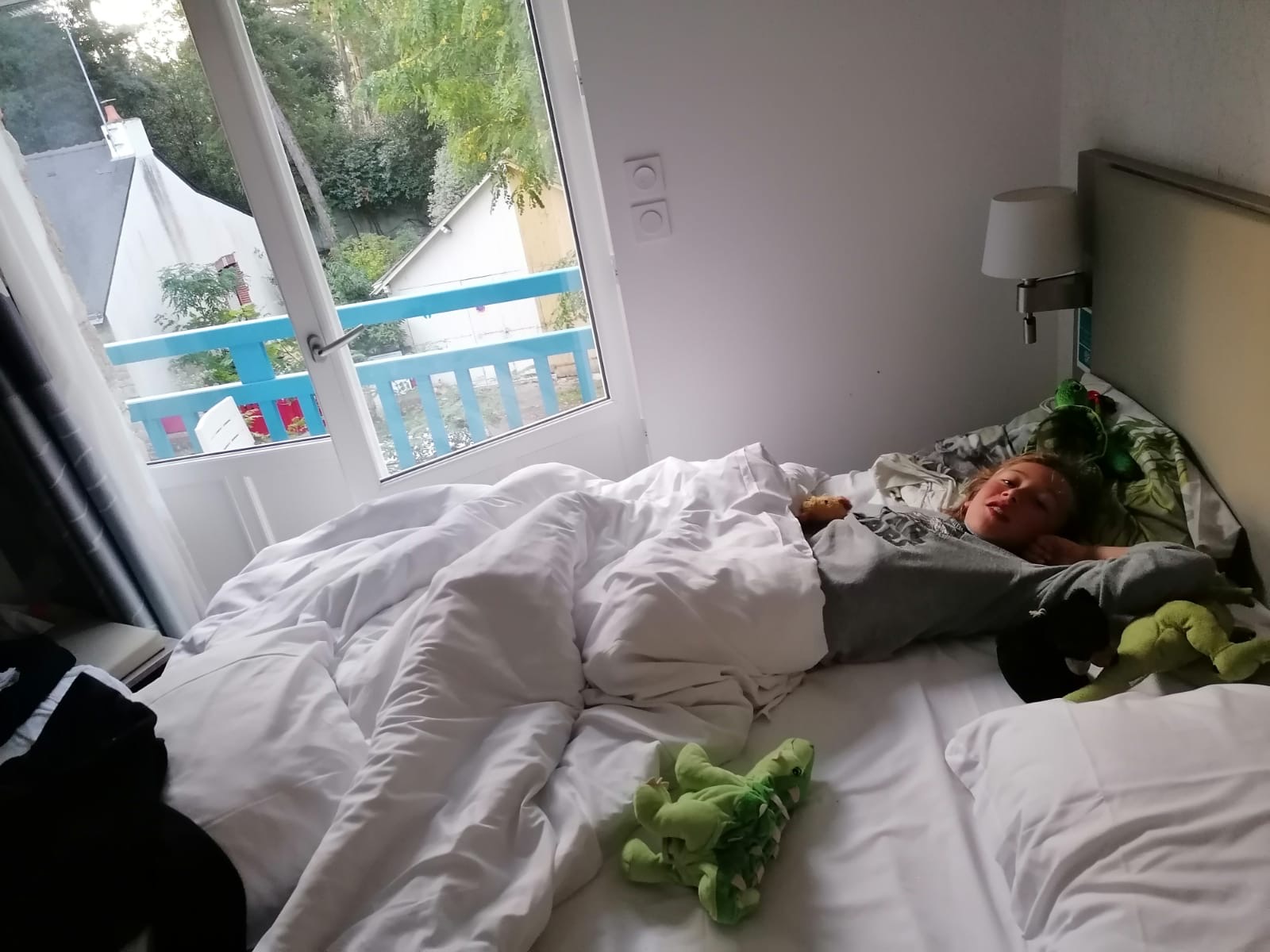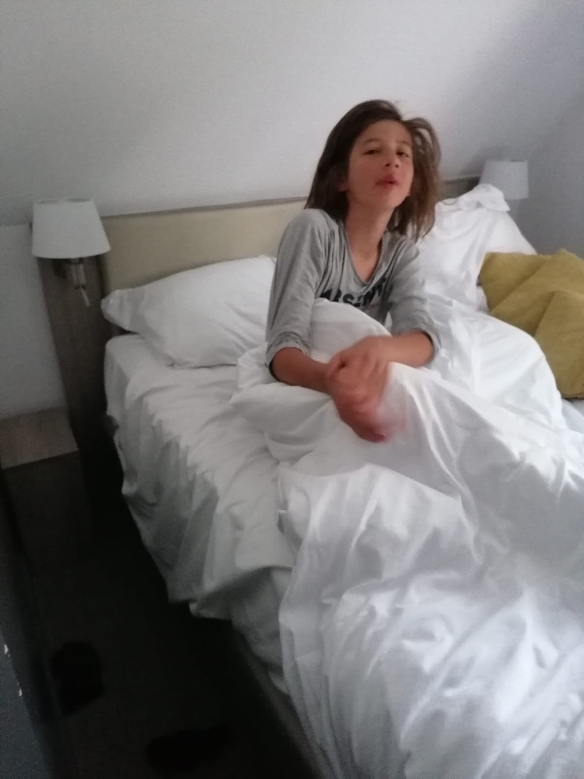 Le soleil venait à peine de se hisser au-dessus de l’horizon quand Sandrine, fidèle à sa mission, entreprit d’arracher les enfants aux bras de Morphée. Une opération délicate, menée avec doigté… du moins jusqu’à ce que Frédéric, Alexandre et Sonia, en entrant dans la chambre d’Aline et Syrine, soient accueillis par un courant d’air digne d’un mistral en cavale. Les deux dormeuses, quant à elles, semblaient avoir scellé un pacte avec leur oreiller : ne pas céder sans résistance.