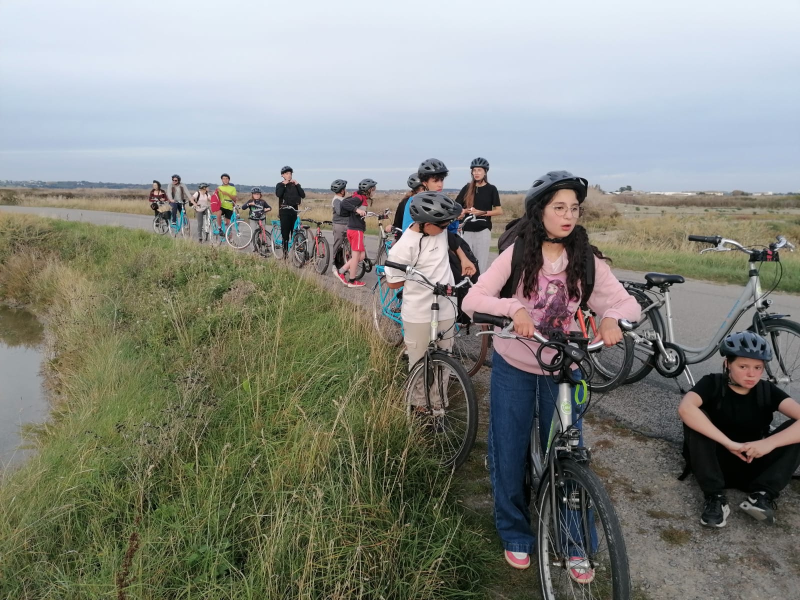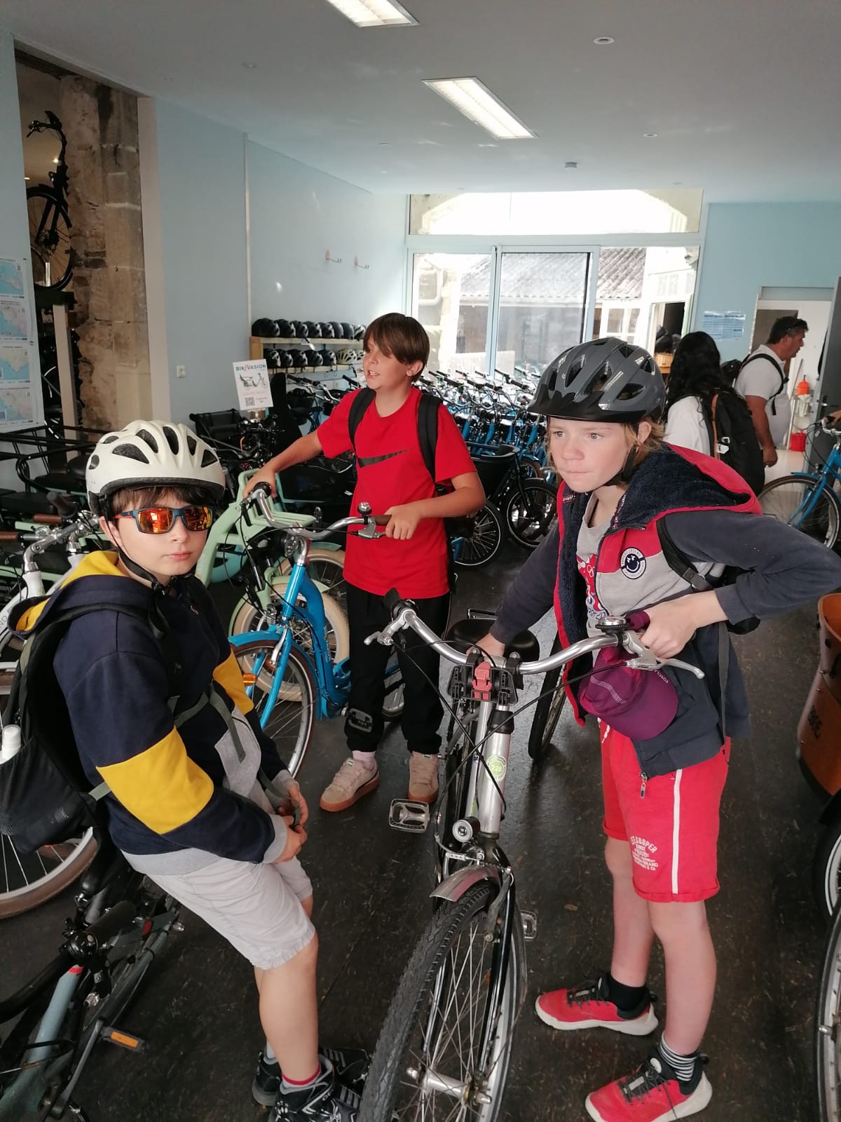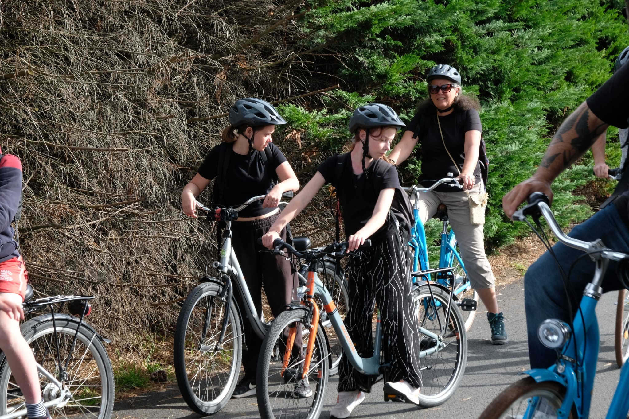À l’arrivée, une photo souvenir, un passage express aux toilettes publiques, et déjà l’heure de repartir si nous voulions éviter de voir le magasin de location se transformer en citadelle imprenable. C’est alors que le sort s’en mêle : la roue avant du vélo de Nassime est crevée. Appel à BikEvasion, solution trouvée : Guillaume reste en arrière, stoïque, attendant le rapatriement en estafette pendant que le reste du groupe reprend la route.