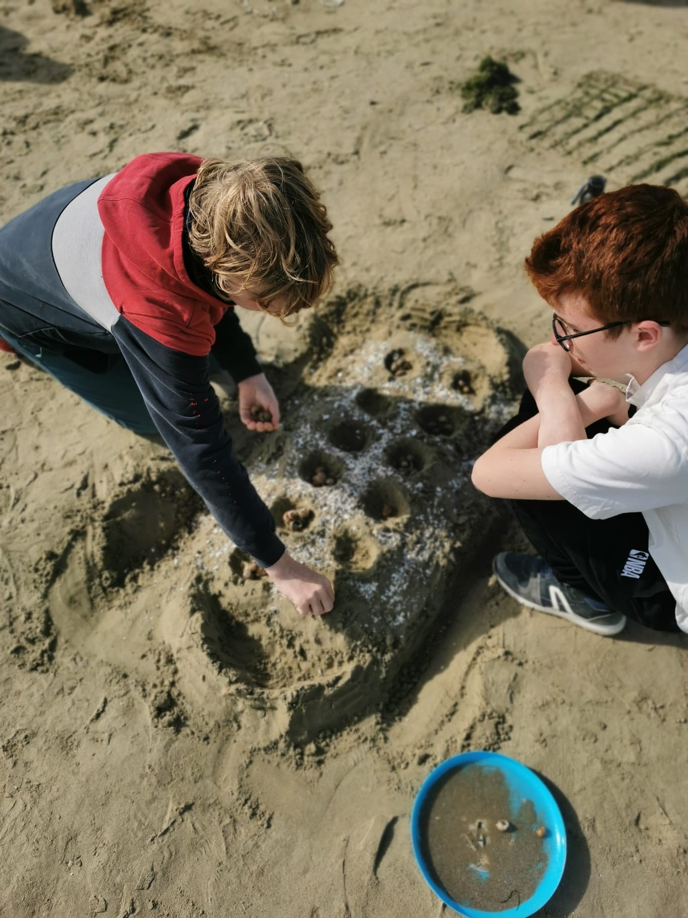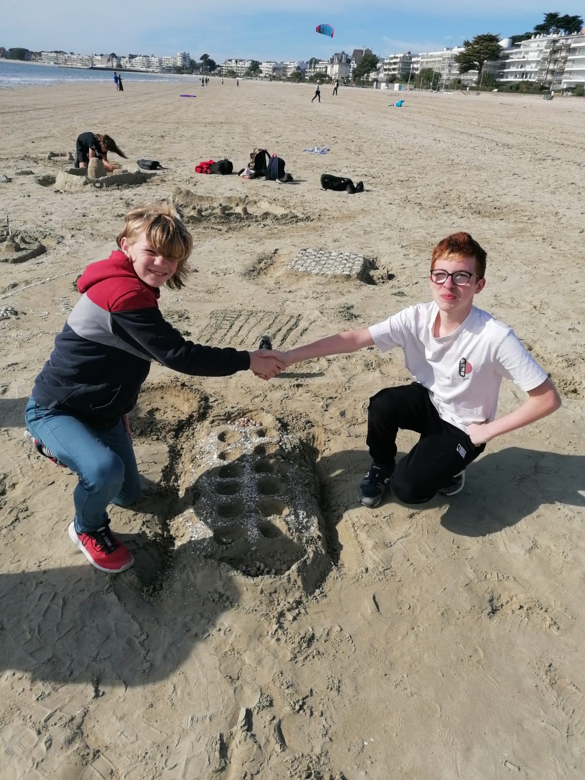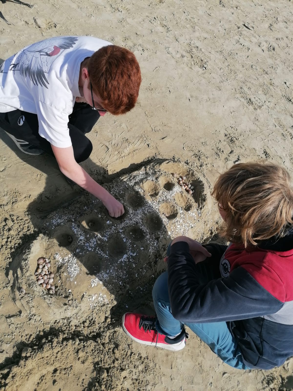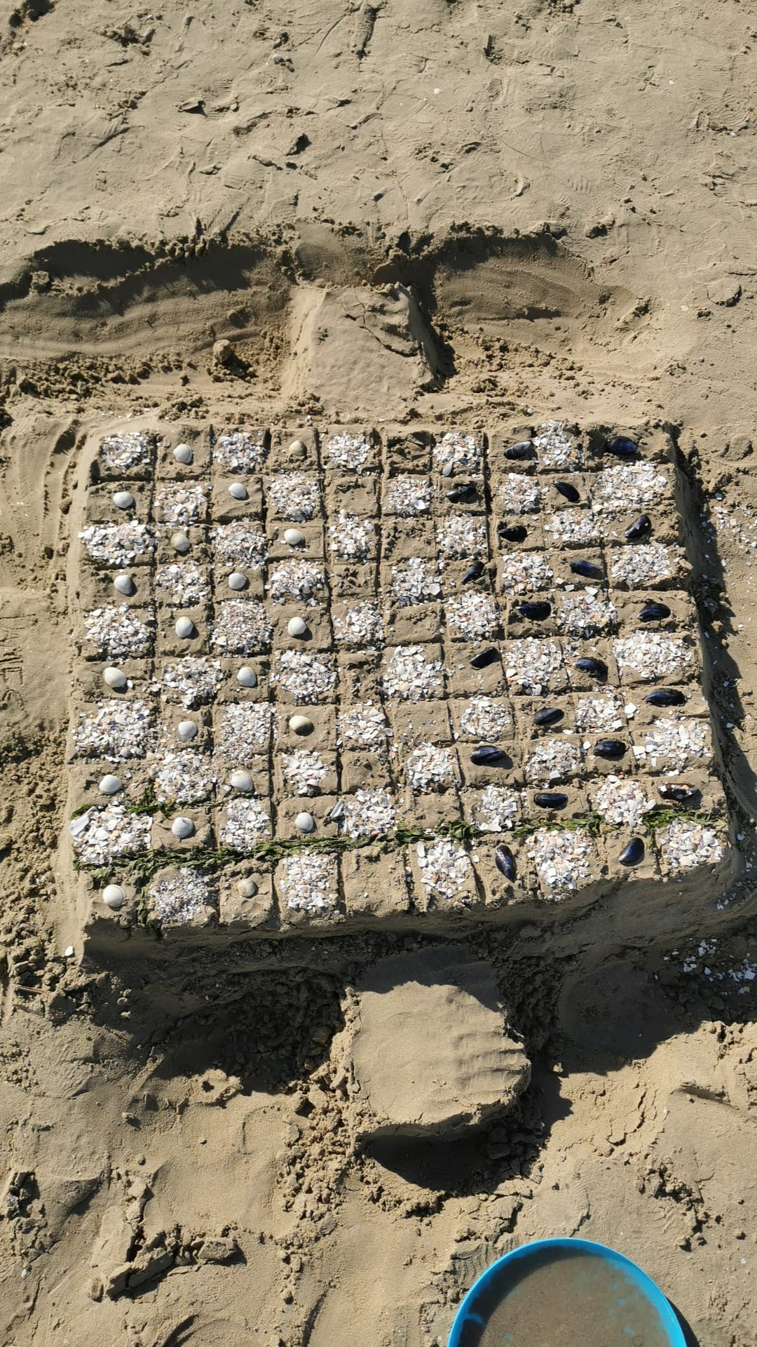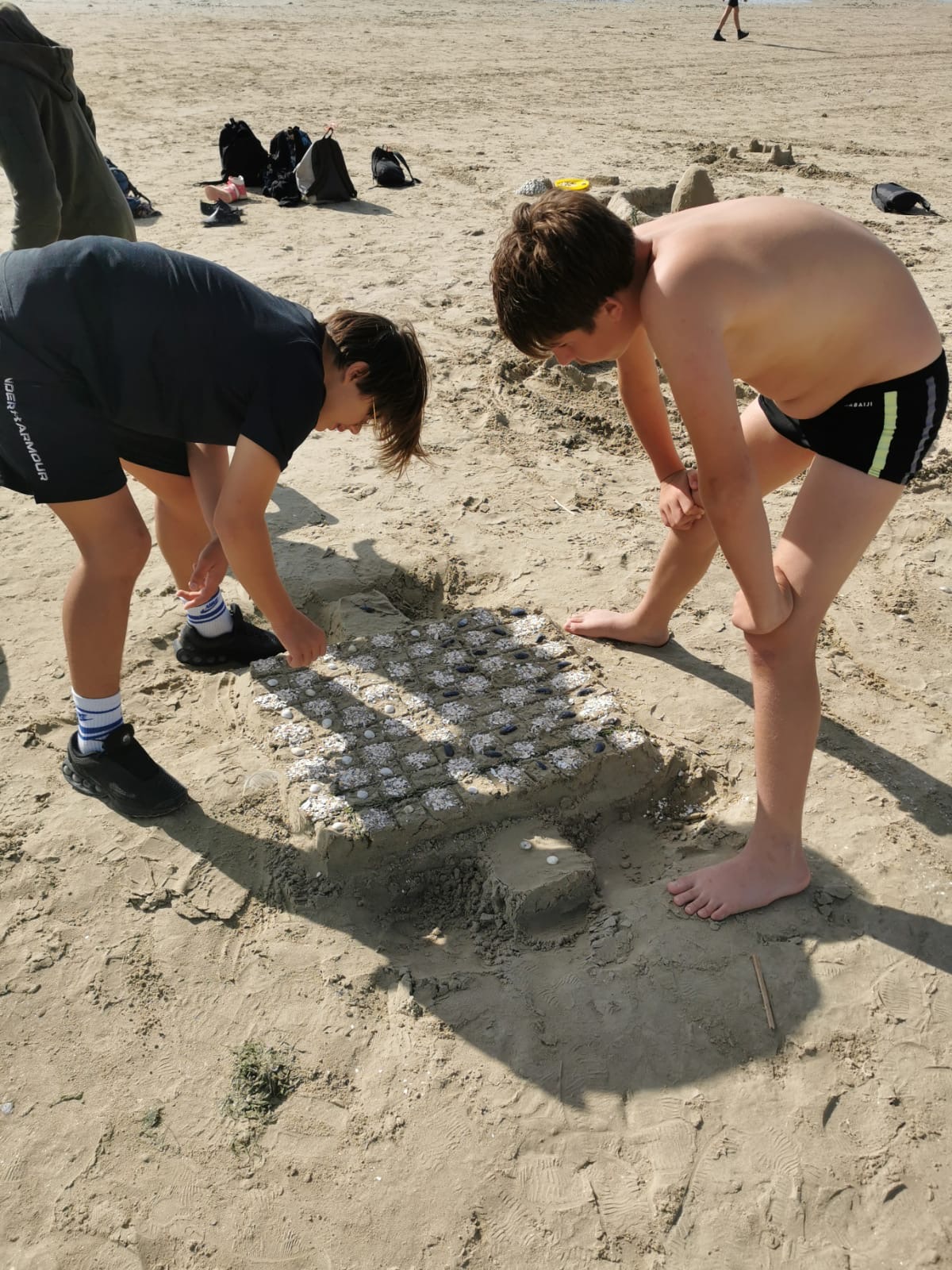 Pendant ce temps, sous la houlette de Raphaël, certains se sont improvisés artisans ludiques : fabrication de jeux de société en sable, dont un plateau de dames et un awélé qui ont vu Naëll et Nathan s’affronter dans une partie aussi stratégique qu’animée.