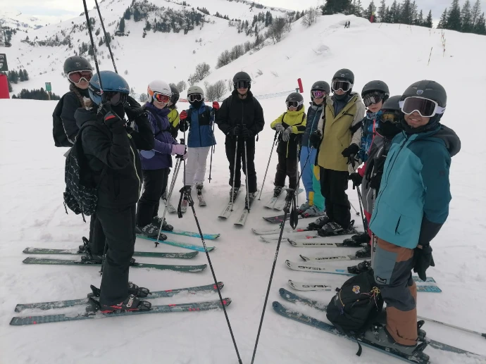 Avant le déjeuner, ils ont rejoint toute la classe au sommet de la Marmotte pour une descente commune, un instant de cohésion qui a réchauffé autant que le soleil.