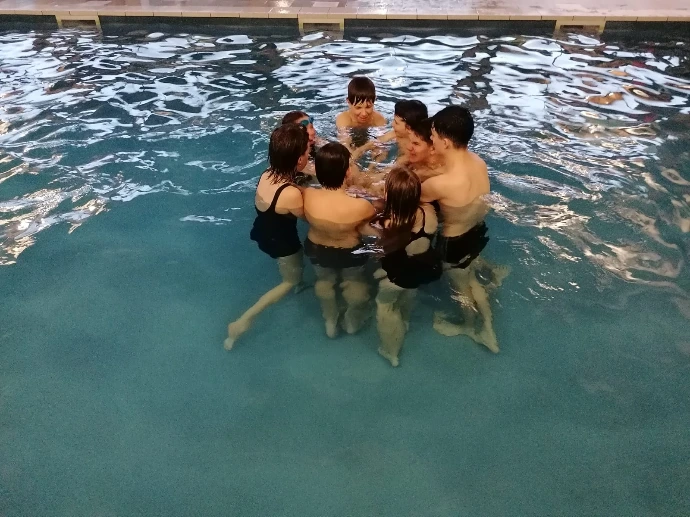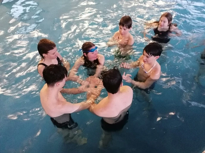 À notre arrivée, un goûter nous attendait, comme une récompense. Puis direction la piscine, où l’énergie est revenue d’un coup : sauts du bord, plongeons depuis les épaules des camarades, éclats de rire qui résonnaient sous la voûte.