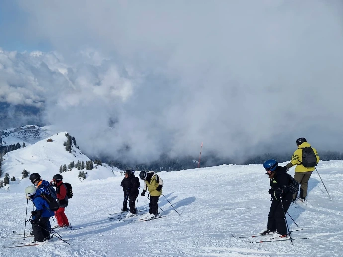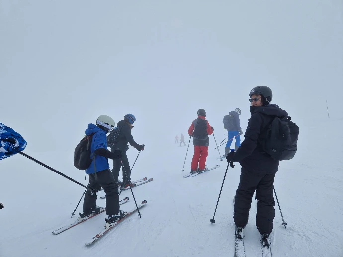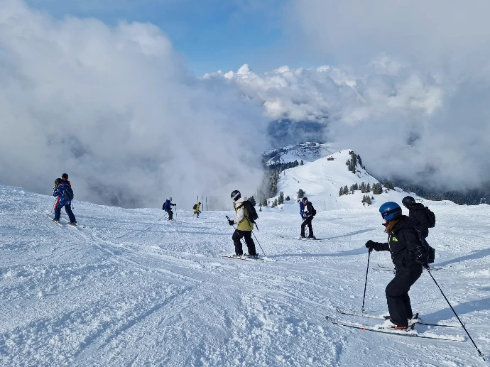L’après‑midi, Aline, Arthur et Calixte ont rejoint le groupe d’Alexandre, tandis que celui de Frédéric poursuivait sa progression. Les élèves ont enchaîné les pistes vertes, puis trois descentes de la « Lesière », parfois plongée dans un nuage épais qui effaçait presque le monde autour d’eux. Les progrès étaient si nets que Frédéric a décidé de les emmener sur la « Demoiselle », puis sur la bleue « Écureuil », avant de s’attaquer à l’« Oratoire ». Une montée en confiance, presque palpable.