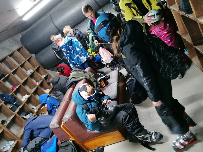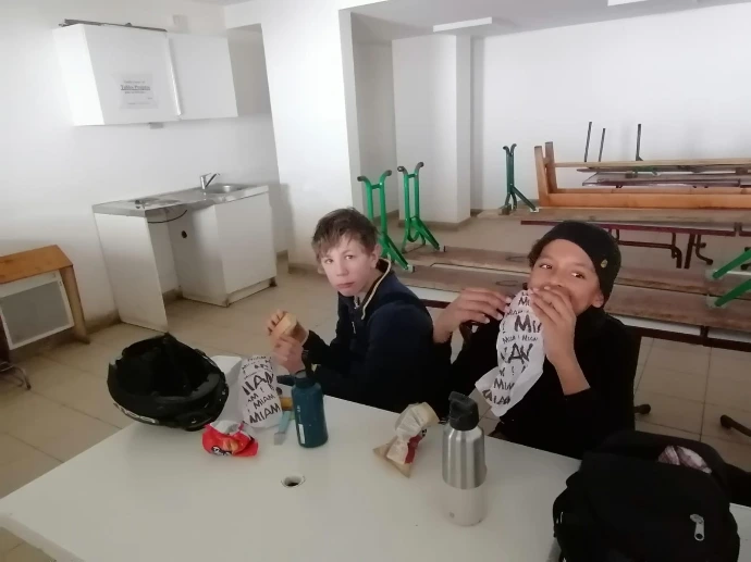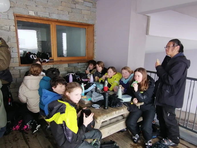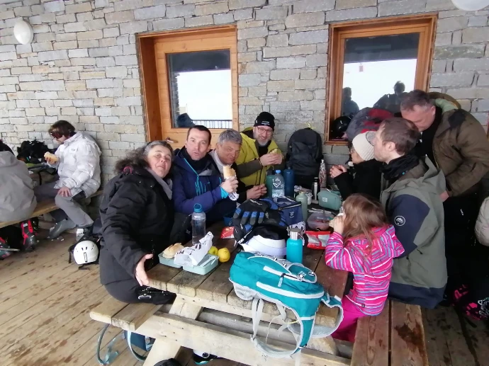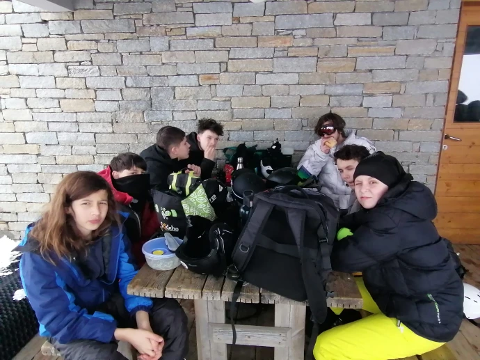 À midi, les trois groupes se sont retrouvés dans la salle hors sac. Un moment suspendu, où les visages rougis par le froid se sont détendus autour des pique‑niques, comme si chacun reprenait son souffle avant la suite.