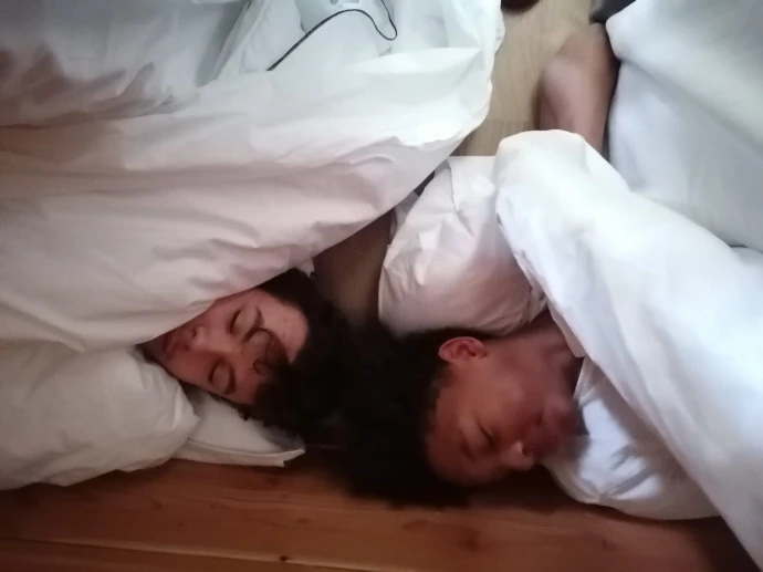 Le dernier réveil à Samoëns a sonné ce matin sous la houlette de Sandrine, Alexandre et Frédéric. Pas de grasse matinée au programme, mais une efficacité redoutable ! Et... une tempête dans la chambre de Lino et Abdallah.