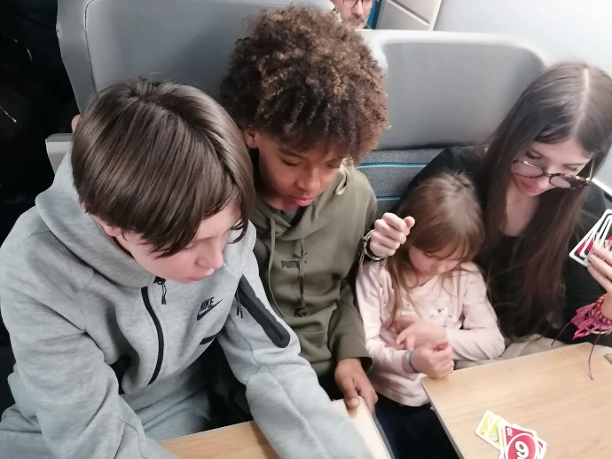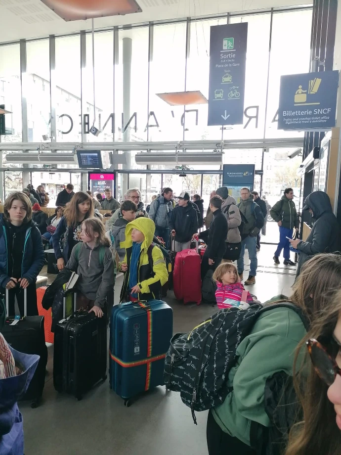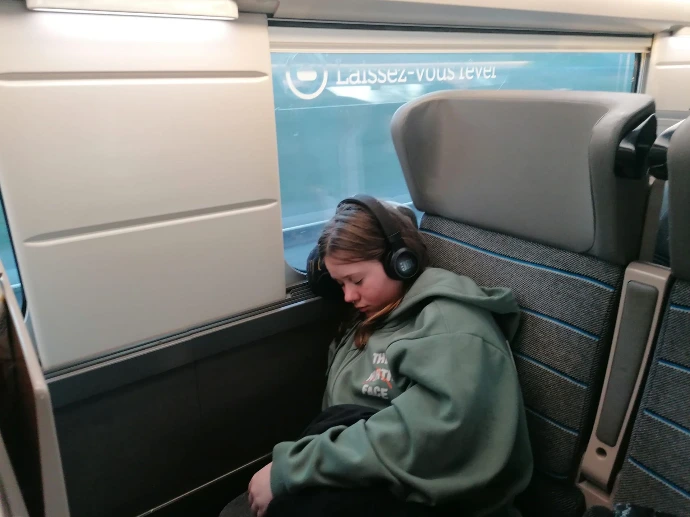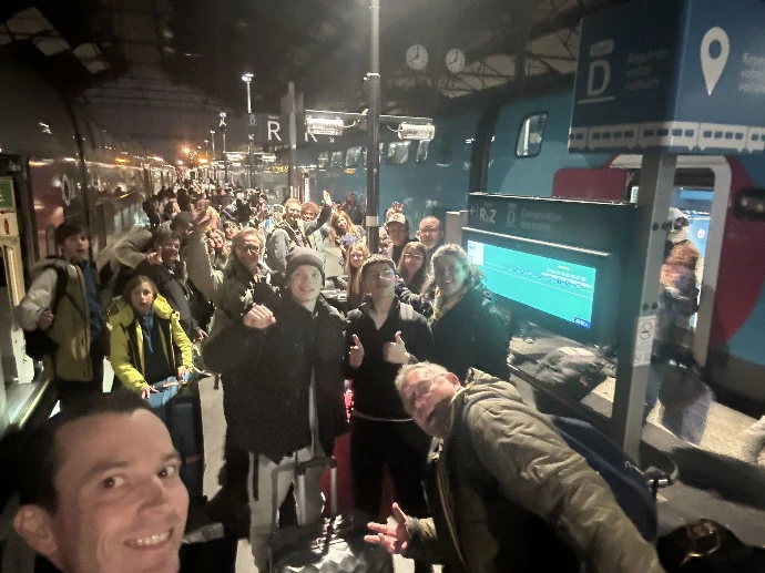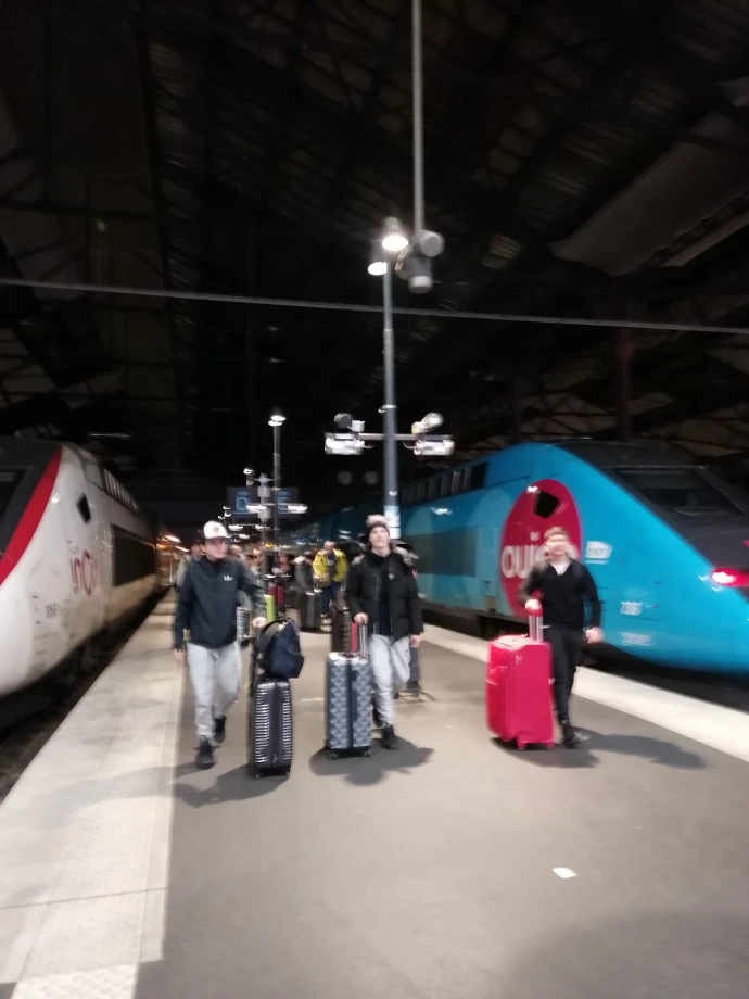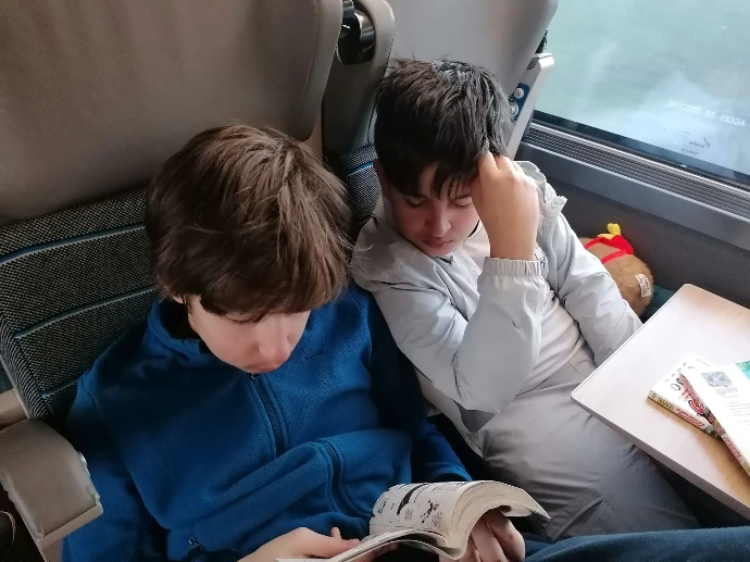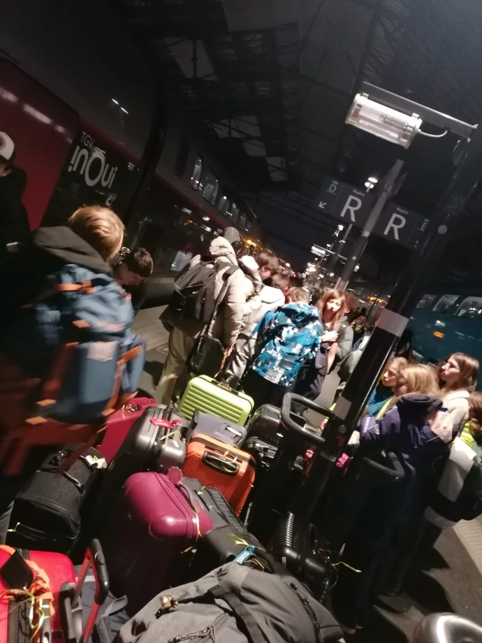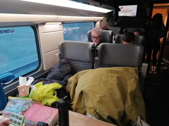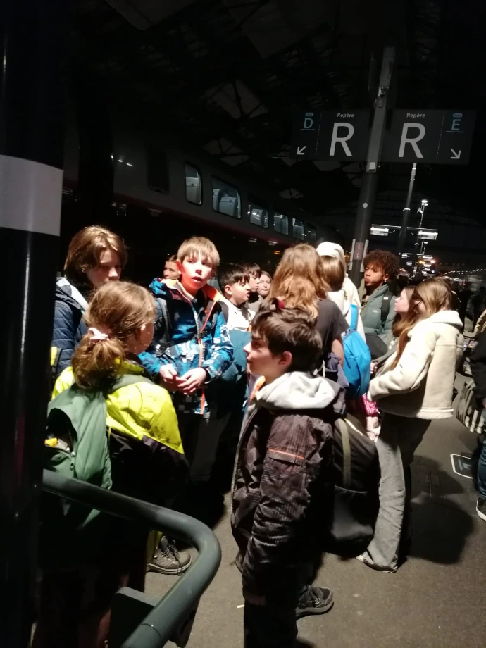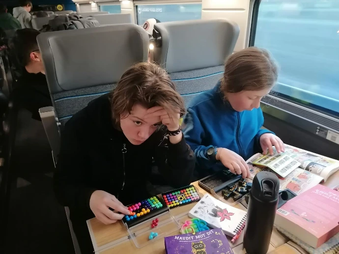 La montagne a voulu nous retenir un peu plus longtemps : un arbre tombé sur les voies a retardé notre départ, annonçant une arrivée à Paris avec 45 minutes de retard. Dans le train, l'ambiance était calme : entre lectures, jeux et siestes réparatrices, chacun savourait ses derniers instants de vie collective.